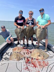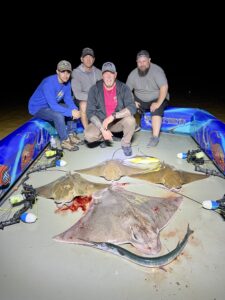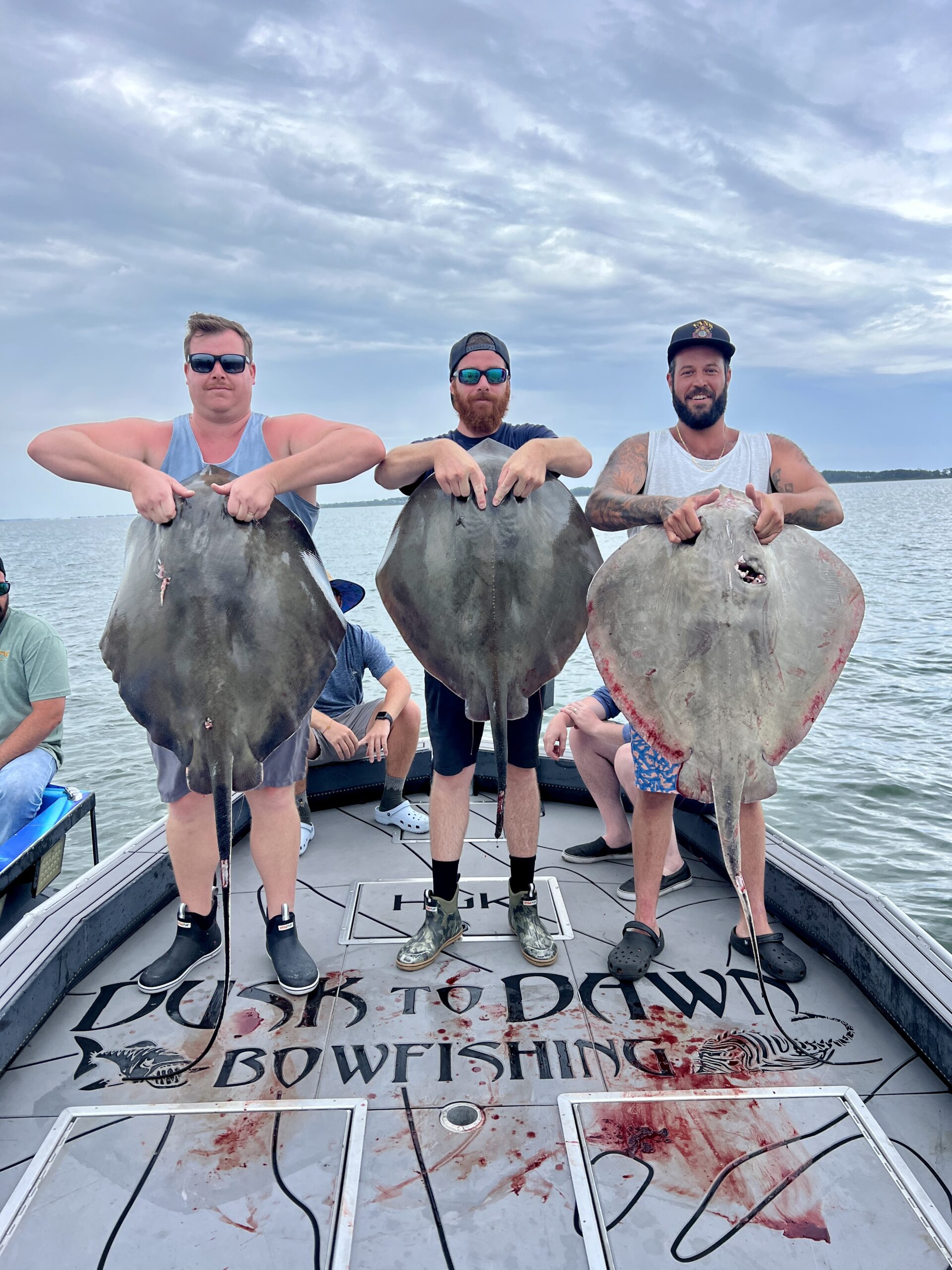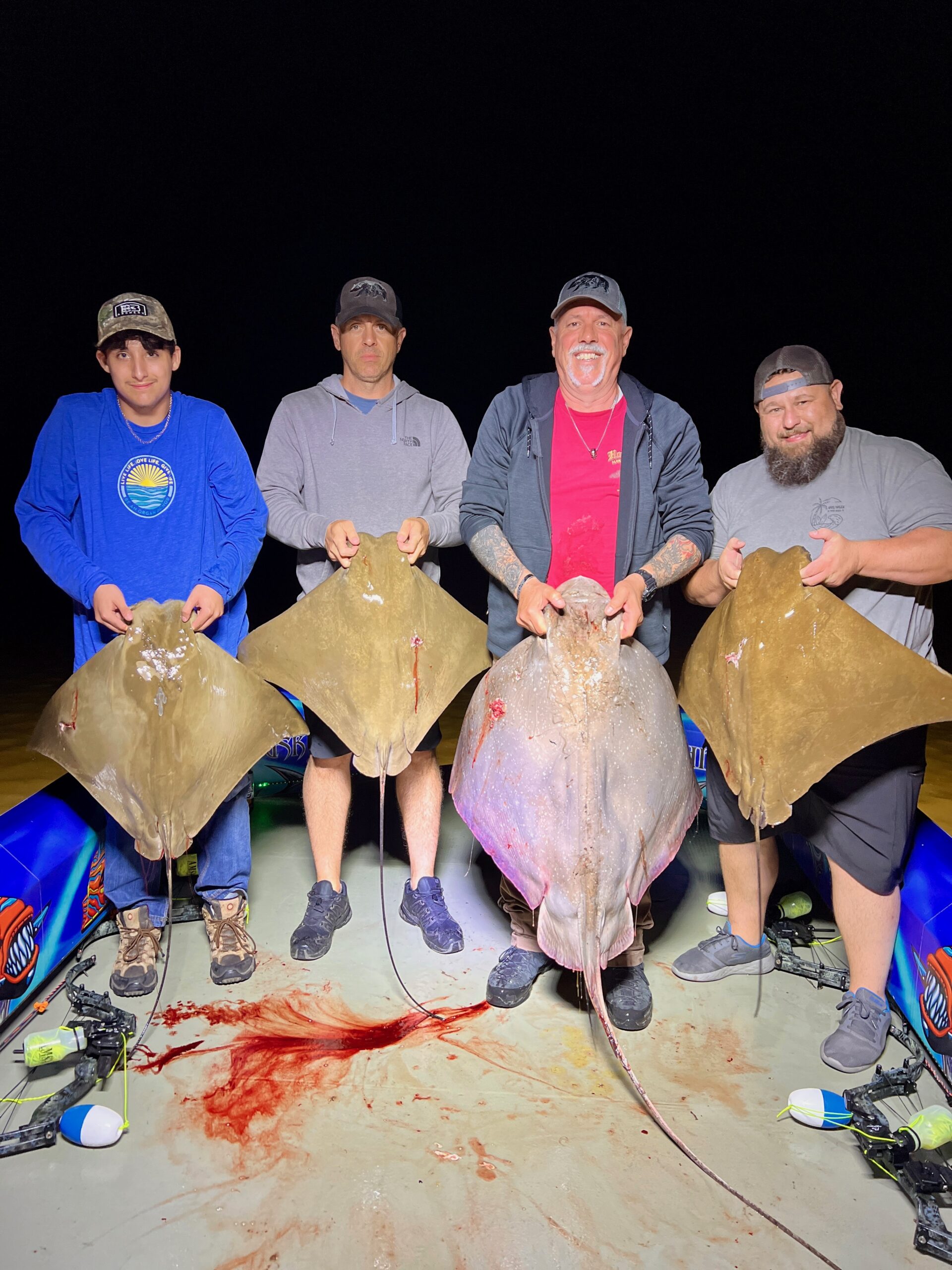 Captain Marc Spagnola of Dusk to Dawn Bowfishing has had a busy couple of days with good shooting for rays both day and night.