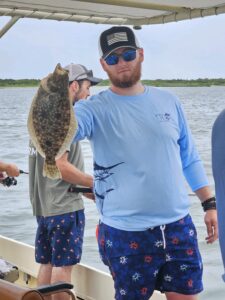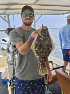 Captain Jason Mumford of Lucky Break Charters had another good day of flounder fishing even though there weren’t a bunch of keepers. He also had some fun throwback rockfish action and a “windowpane” flounder.