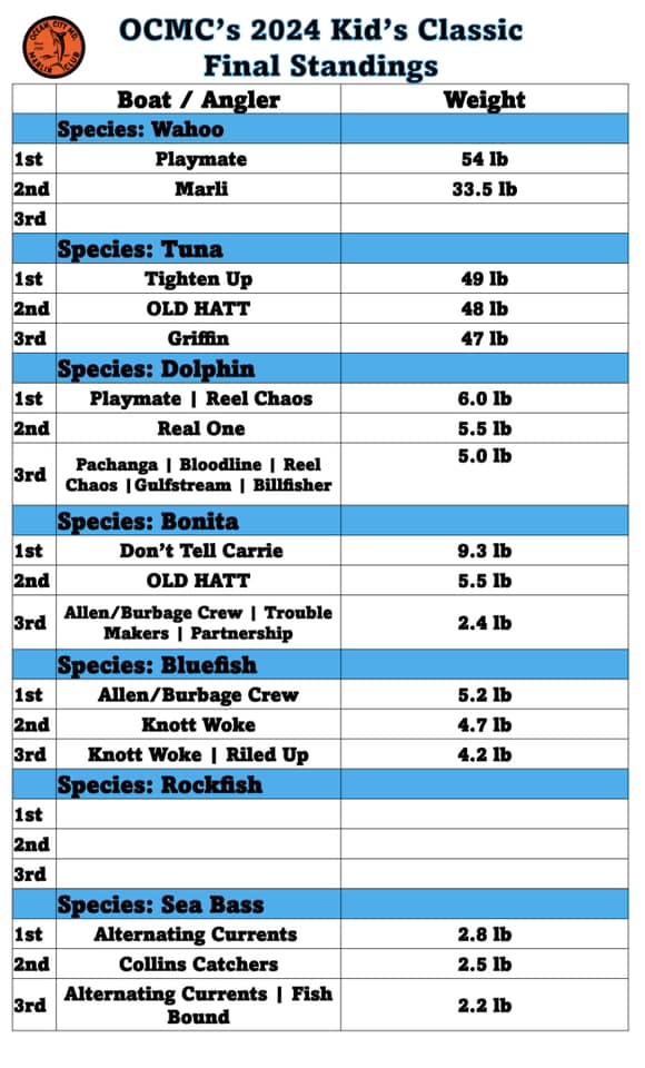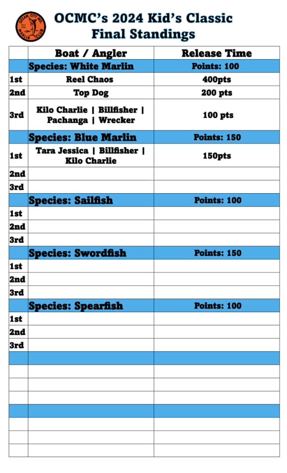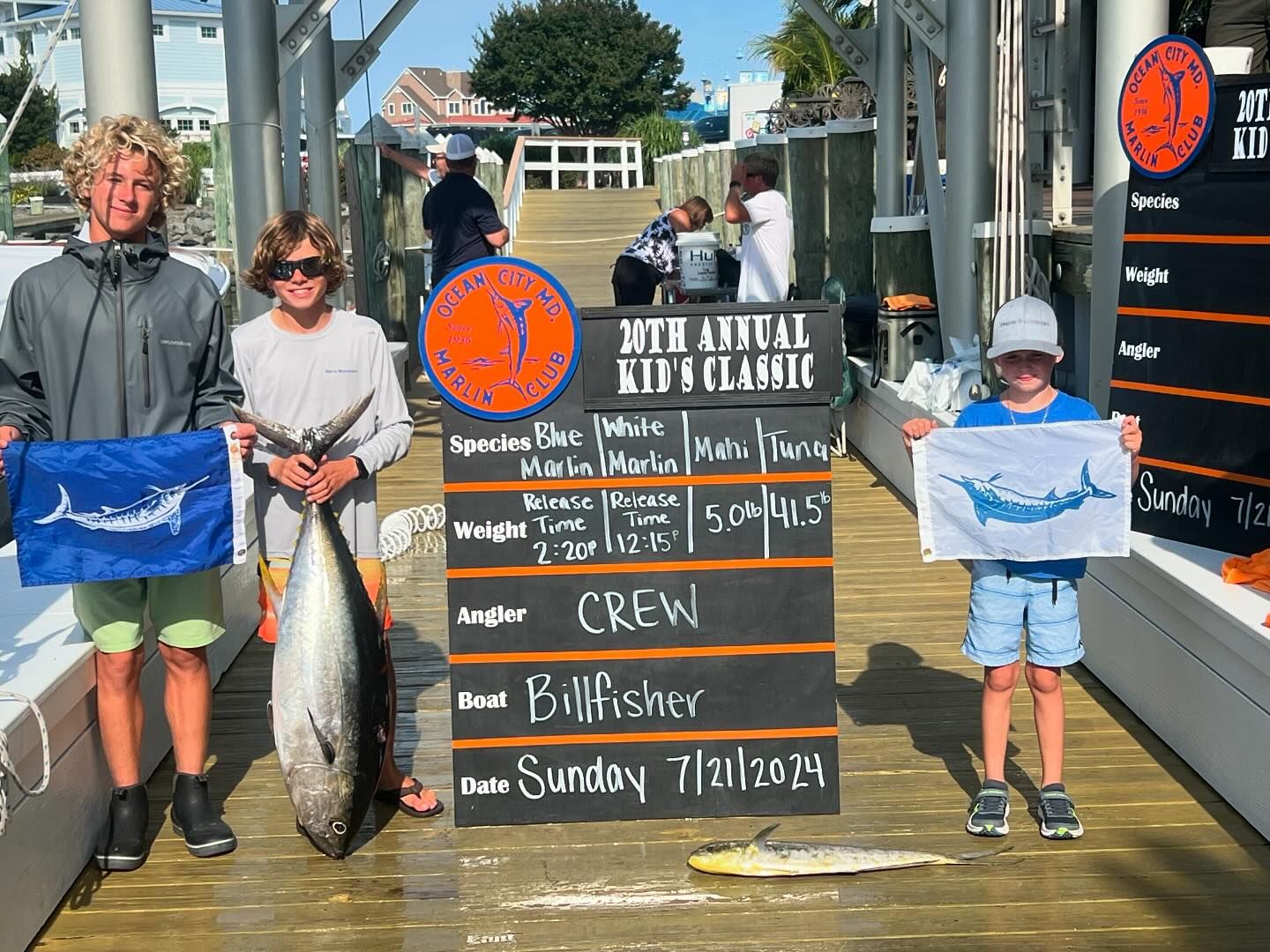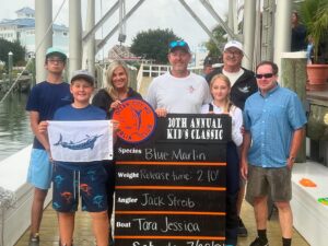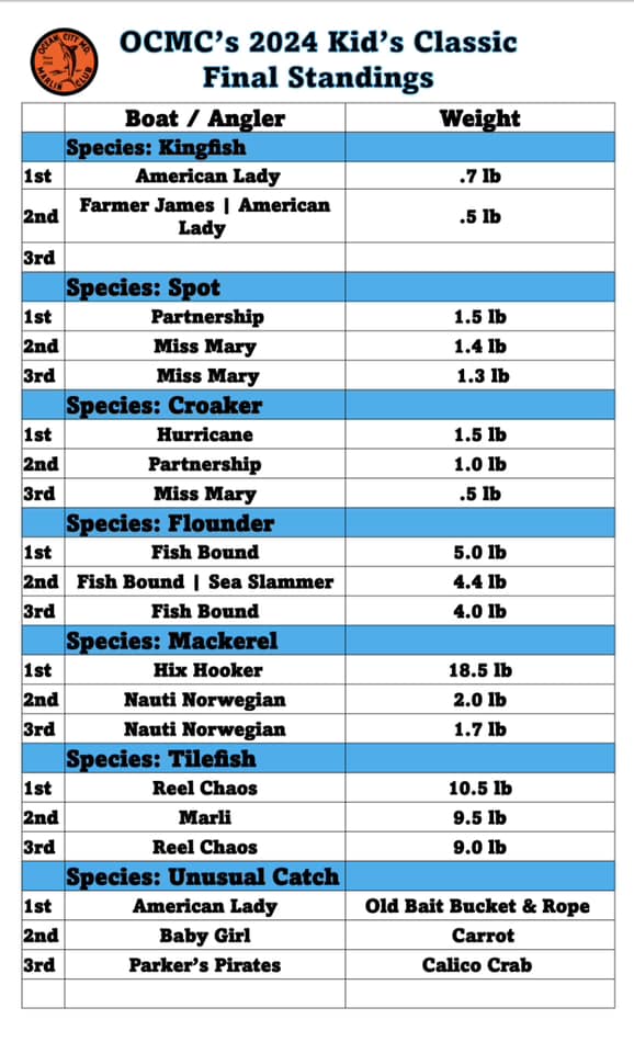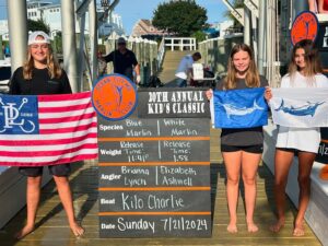 It was a nice cool, calm day today, but when the rain moved in it literally dampened the fishing scene. There was still some rod bending going on and I got results from this past weekend’s record breaking Kid’s Classic Tournament put on by the Ocean City Marlin Club.