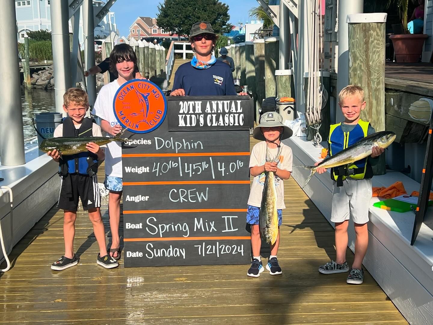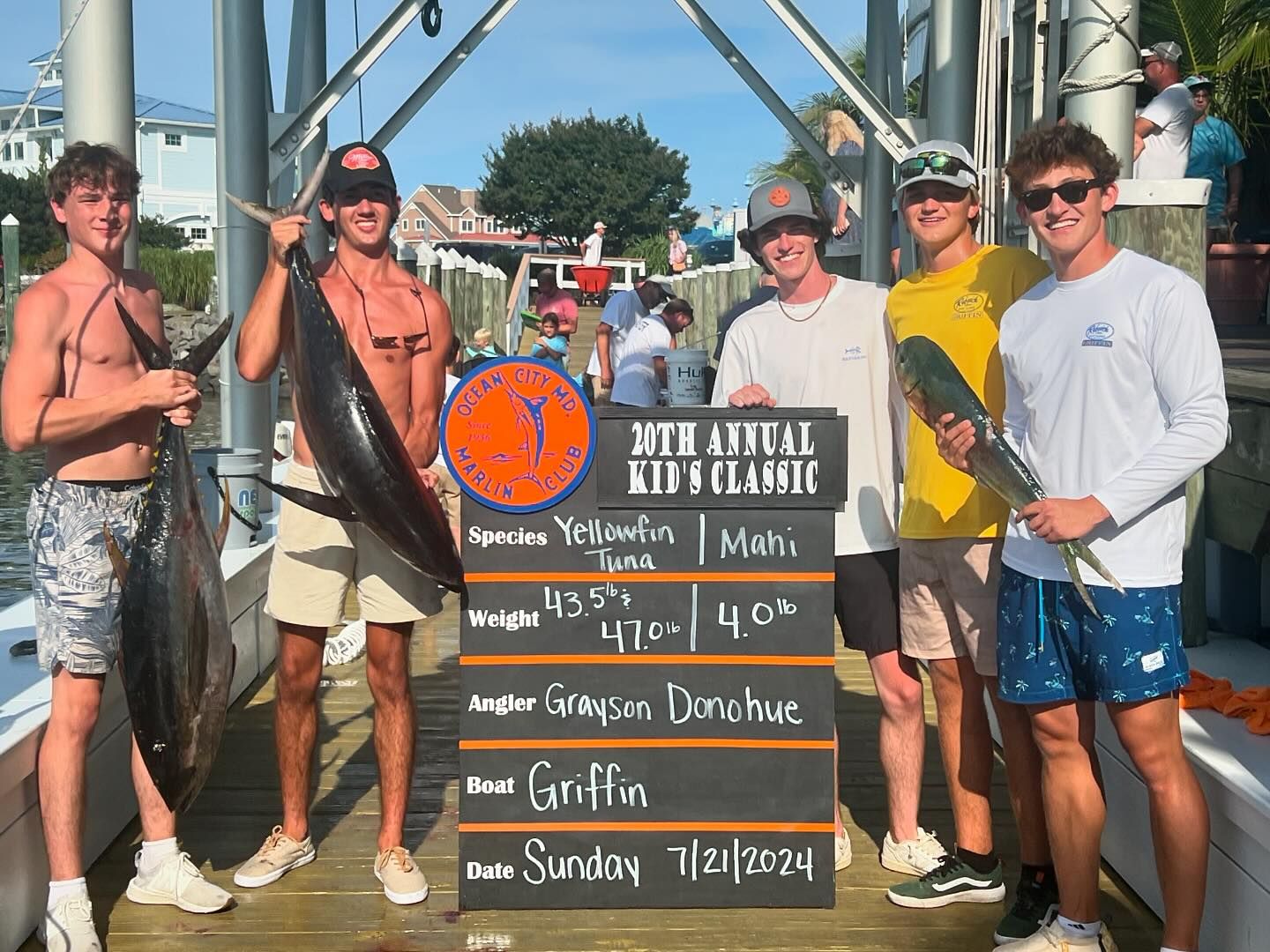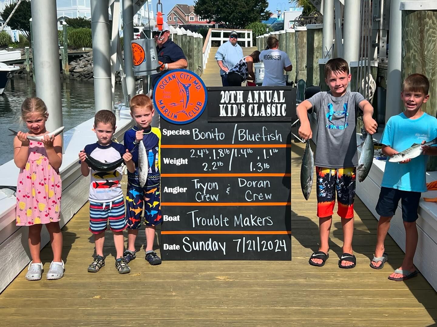 It was a nice cool, calm day today, but when the rain moved in it literally dampened the fishing scene. There was still some rod bending going on and I got results from this past weekend’s record breaking Kid’s Classic Tournament put on by the Ocean City Marlin Club.