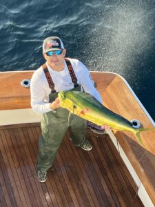 The crew of Spring Mix II with Captain Chris Watkowski had another good day in the canyons putting two yellowfin tuna and a limit of mahi in the fish box.