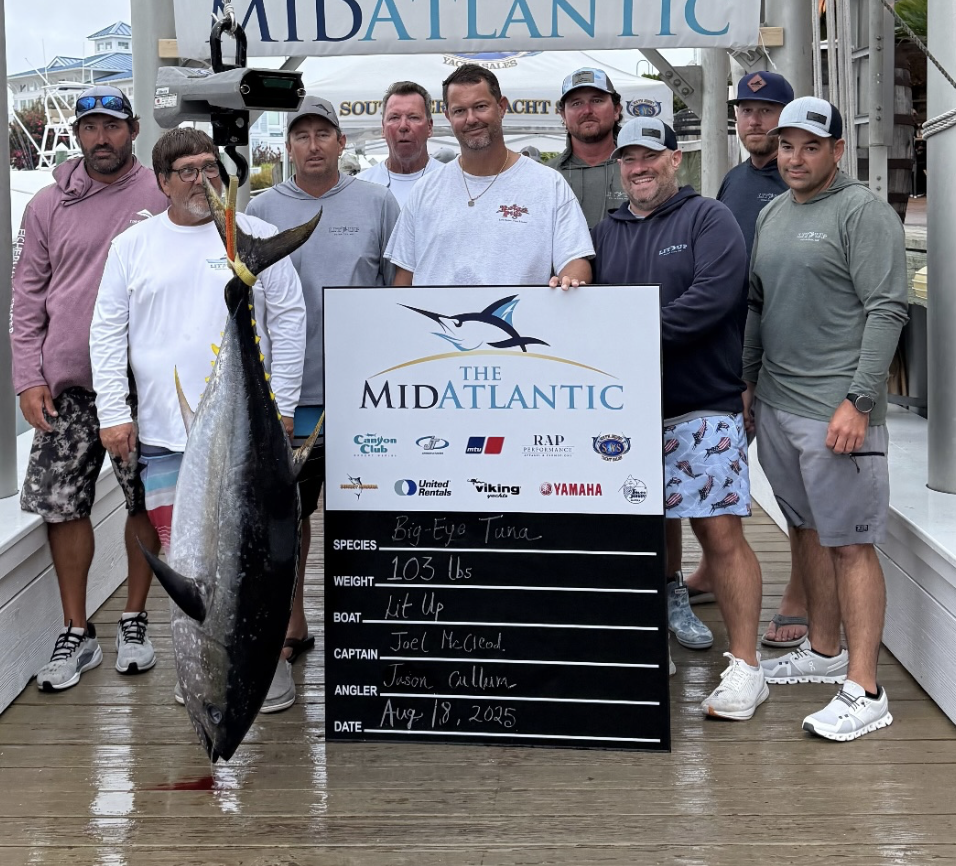 Man, it certainly was a weird week with rough weather caused by Hurricane Erin, and intermittent calm weather that saw very fishable days. The MidAtlantic saw 114 boats vying for $3.2 Million in prize money and there was some awesome fishing. We barely got the three days out of six with the addition of Saturday, but some awesome fishing hit the scales. It was another awesome tournament and I was glad to be a part of it. Here’s who finished at the top. Thanks to Sunset Marina and The MidAtlantic for the pics!