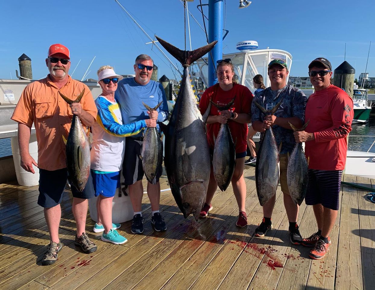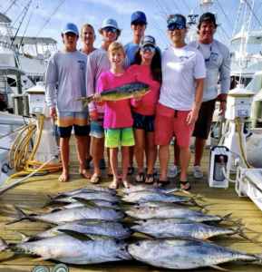 The crew of the Boss Hogg with Captain Brian Porter had a very nice family day of fishing that ended with a line of tunas on the dock at Sunset Marina.