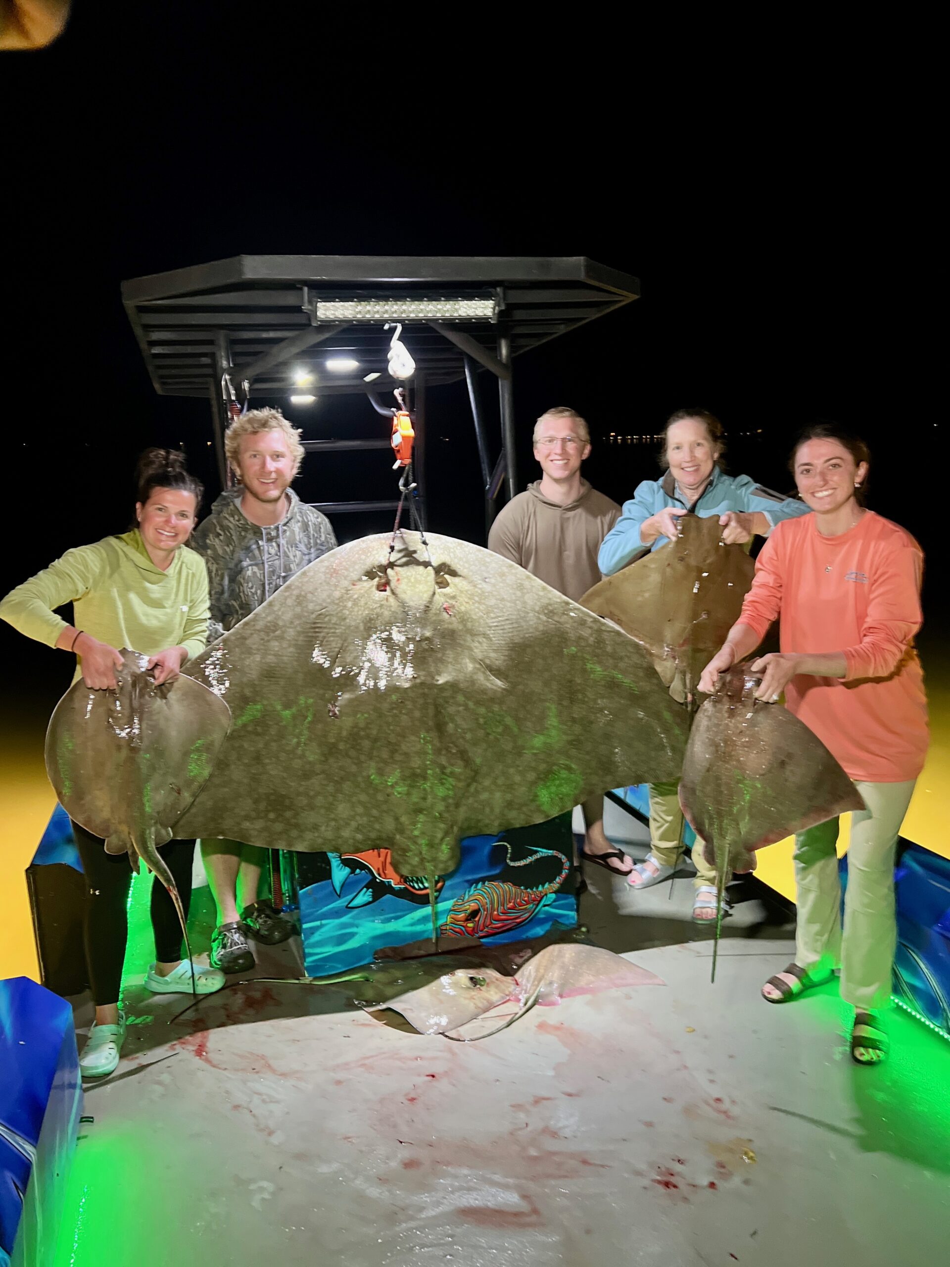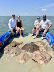 Captain Marc Spagnola of Dusk to Dawn Bowfishing had a great day and night for his shooters putting them on some really nice rays. It was cow nosed and southerns during the day and then a huge butterfly ray at night.