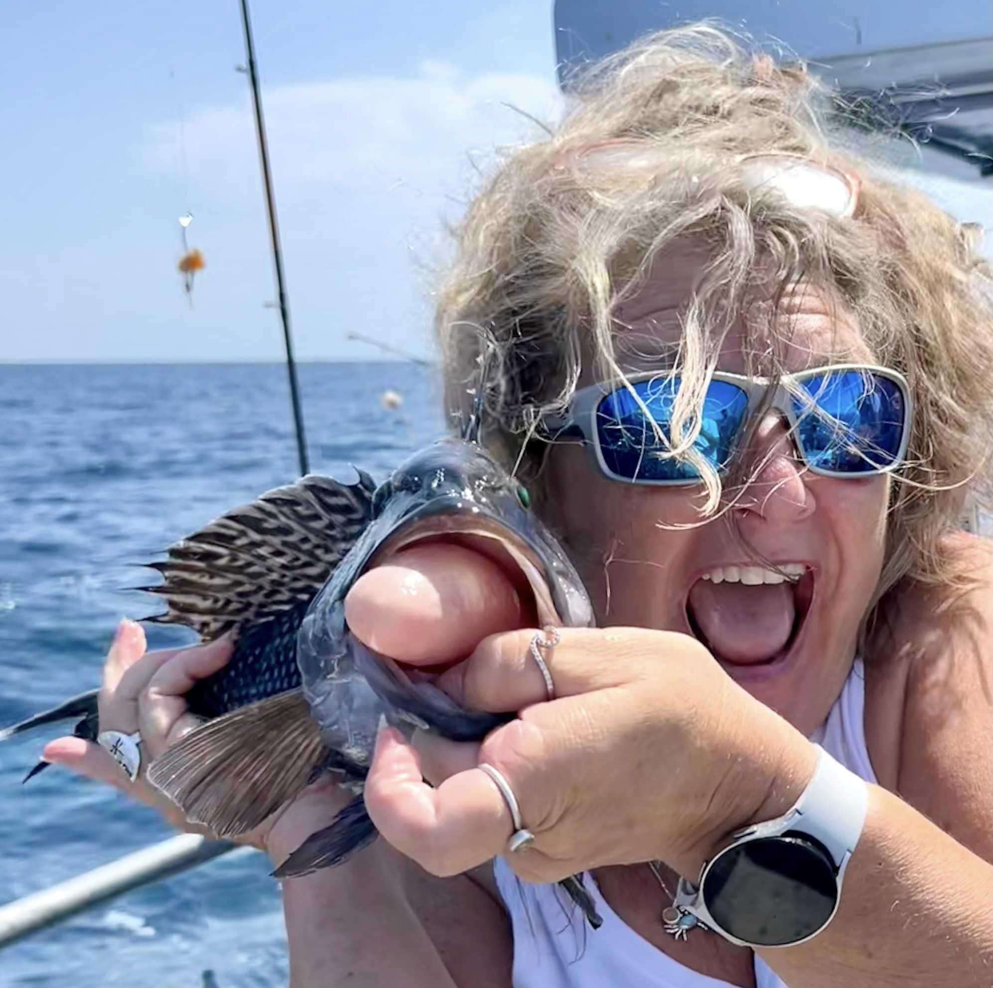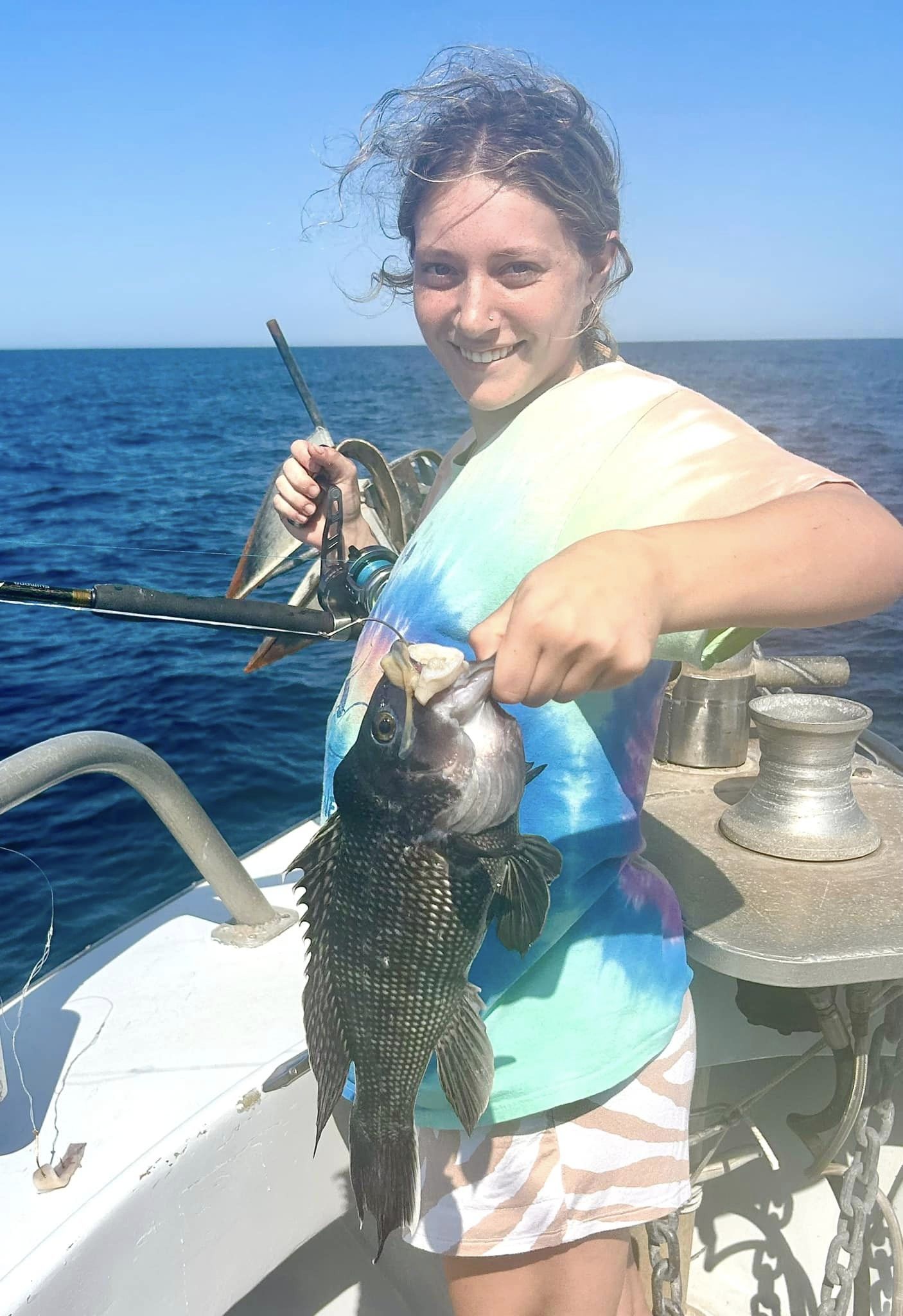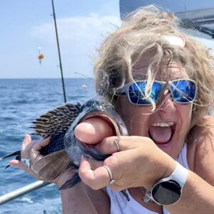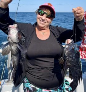 Made it work though. Melissa & Lori had a perfect tie to split the pool money. My anglers found similar result both drifting & anchored – a few seriously nice cbass everywhere we went