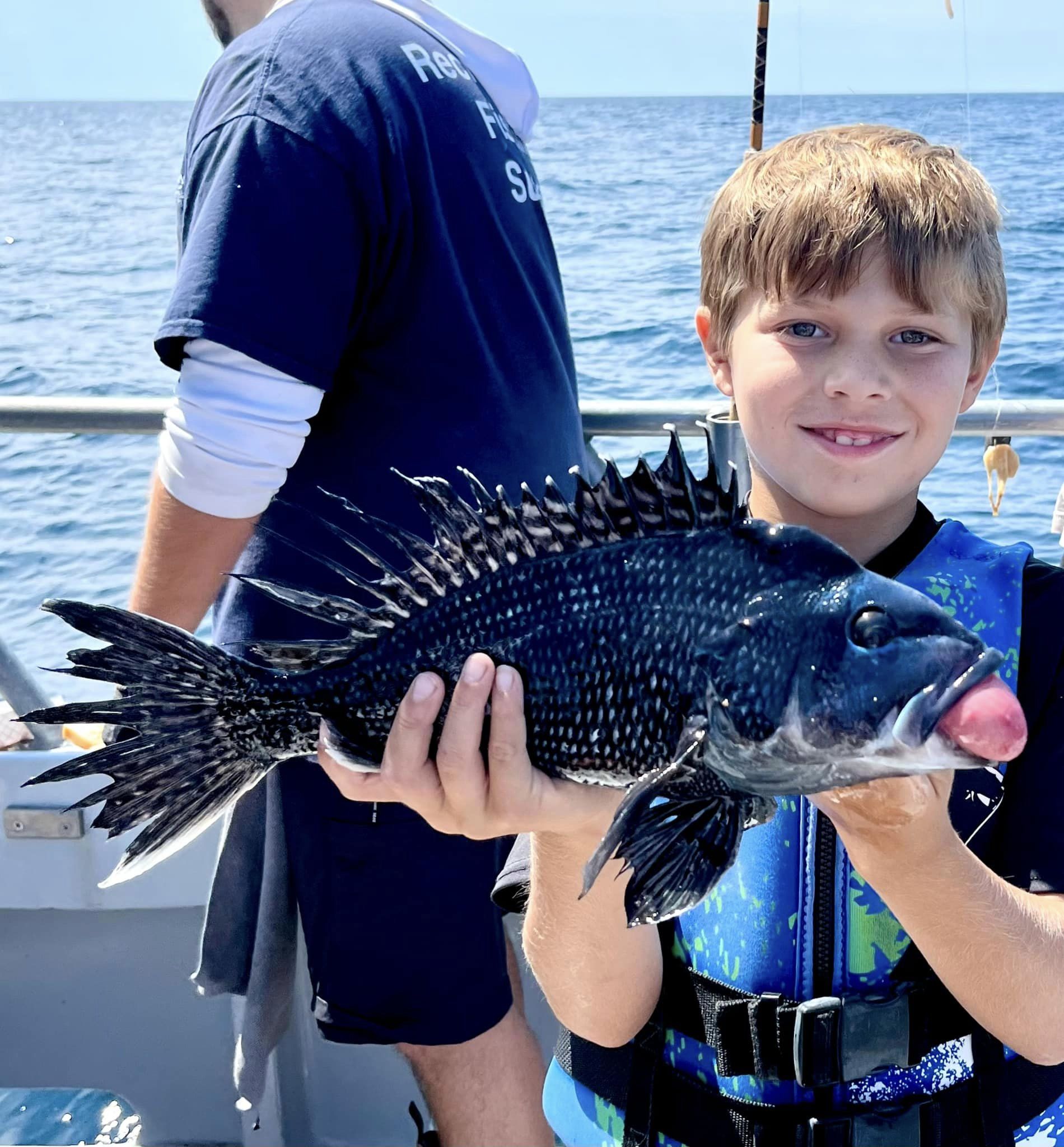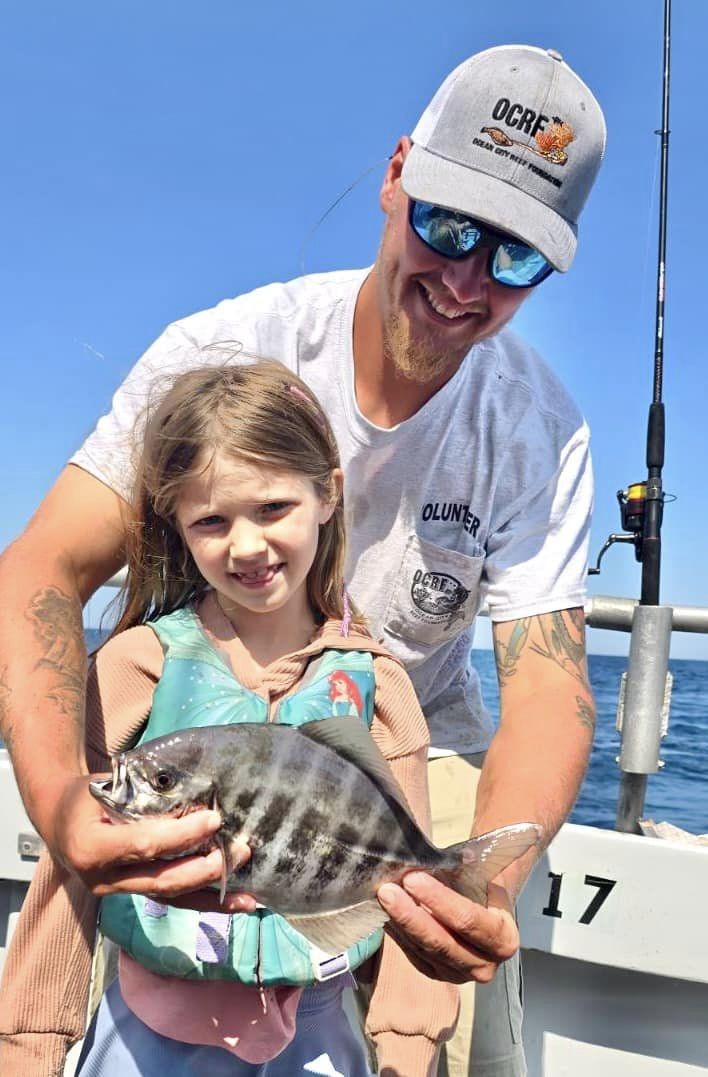 Captain Chris Mizurak of the Angler reported a heavy current today, but he still managed some sea bass and keeper flounder for his folks.