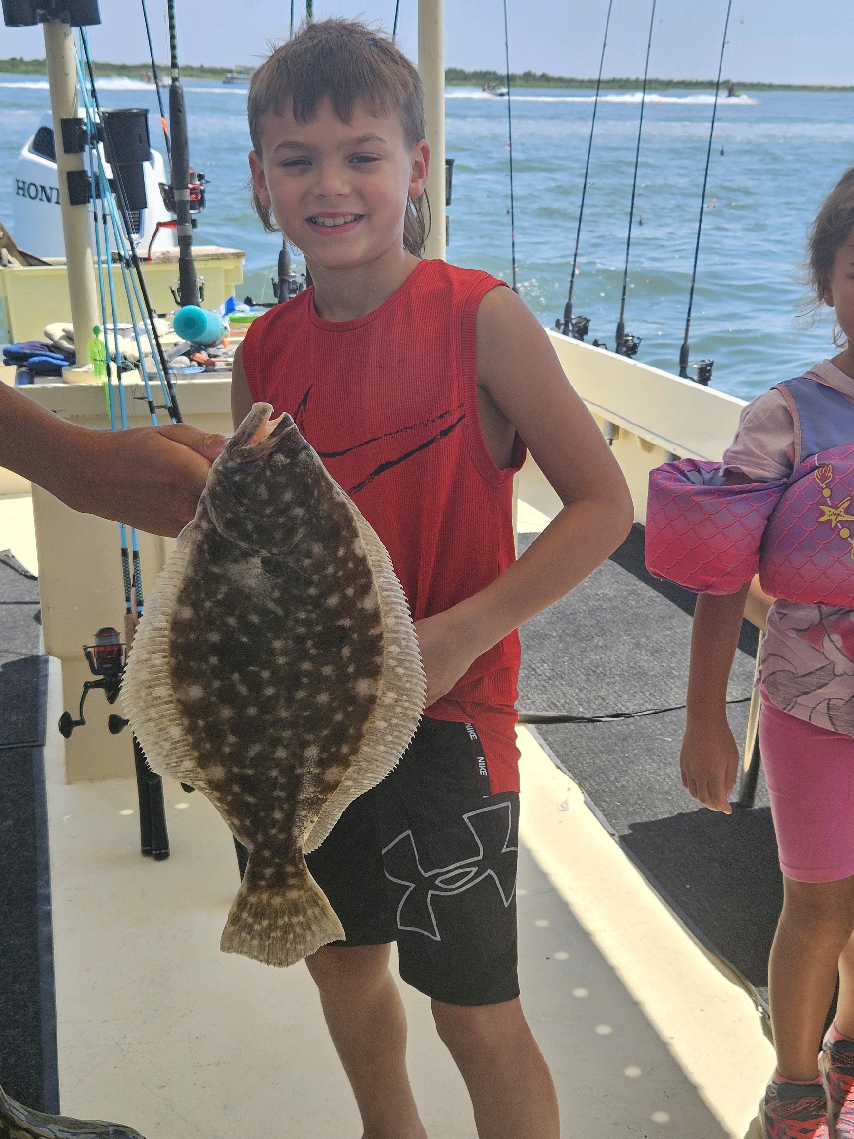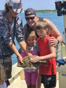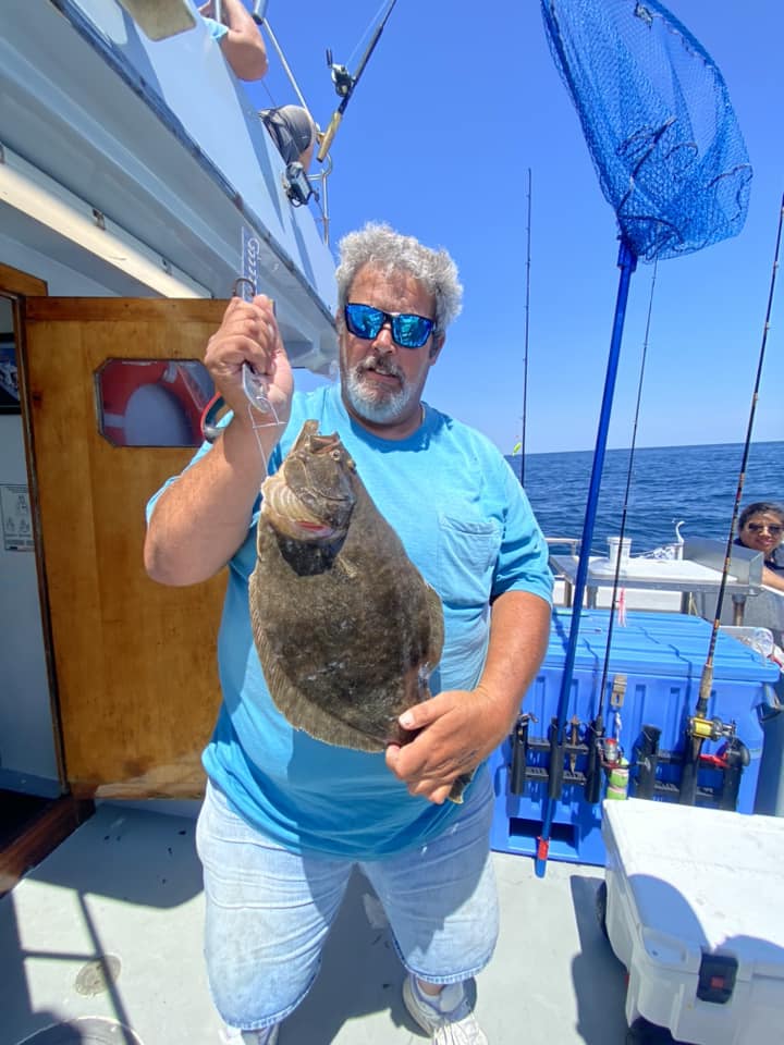 Captain Jason Mumford of Lucky Break Charters found some more throwback flounder and this keeper for his party today.