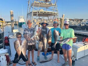 Captain Bill Brown, Dylan Decker, Rocky Brown, Warren Brown and Cheryl Brown had an excellent day with the blueline tilefish on board the private boat Gulfstream out of Pines Point Marina.