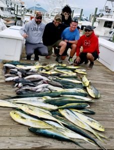 The offshore bite for mahi was really good again today and the Boss Hogg out of Sunset Marina added some tasty bottom dwellers as well. Captain Brian Porter and mates Marshal and Corey put their crew on a limit of mahi, a limit of tilefish and a limit of sea bass on the Hogg today!