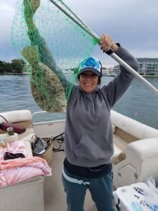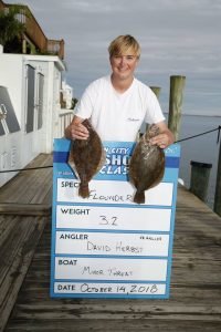 It may have taken trying all season on the new boat, but Jessica Kolstic finally got the keeper flounder she’s been looking for. Jessica found the 17″ fish north of the route 50 bridge.