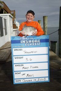Away from the tournament there was some good inshore fishing done by Fish in OC charter partner On the Run with Captain Dave Caffrey. Captain Dave put his crew on some fish that would have done some damage in the Inshore Classic with flounder up to 5 pounds and sheepshead up to 13 pounds.