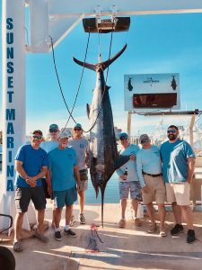 The Boss Hogg with Captain Brian Porter at the helm had one such blue marlin on today’s trip that they fought and realized was dead when it came to the leader. Captain Brian ordered the fish brought on board so that it wasn’t wasted and it tipped the scale at Sunset Marina in West Ocean City at 420 pounds. Photo by Matt McQueeny of Hooked on OC.