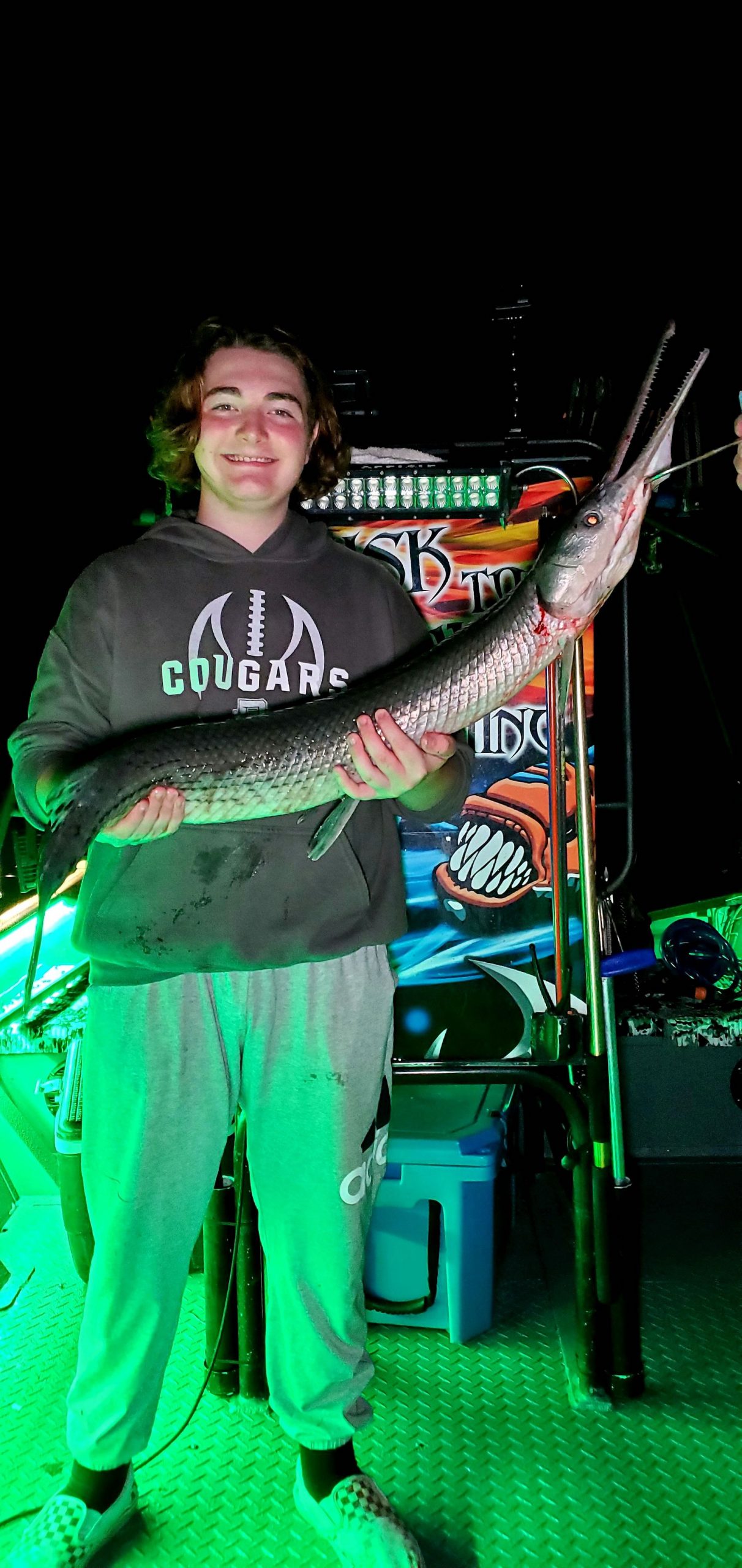 Mike Johnson, fishing up in the “eyes of ‘er” (bow,) was first to bag out today. Ain’t his first rodeo, promise.