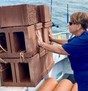 Ms Holly gave today’s blocks a mighty heave; Mr Van a terracotta pipe unit. Both have now become substrate for our temperate corals.