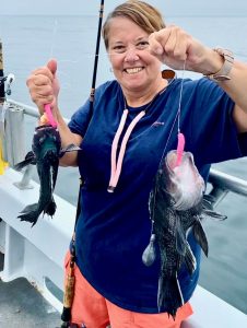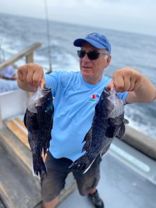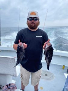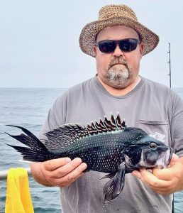I don’t think many from the offshore fleet got to the deep today thanks to the leftover weather, but the party boat fleet did get to the sea bass and flounder grounds. Captain Chris Mizurak of the Angler reported a decent sea bass bite on today’s trip with a few flounder mixed in.