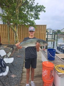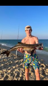 Got a cool pic from Fenwick Tackle today of Tyler Adams who used a piece of cut kingfish to land this huge 41″ cobia from the beach in Ocean City. It was a great catch and of legal length on top of it.