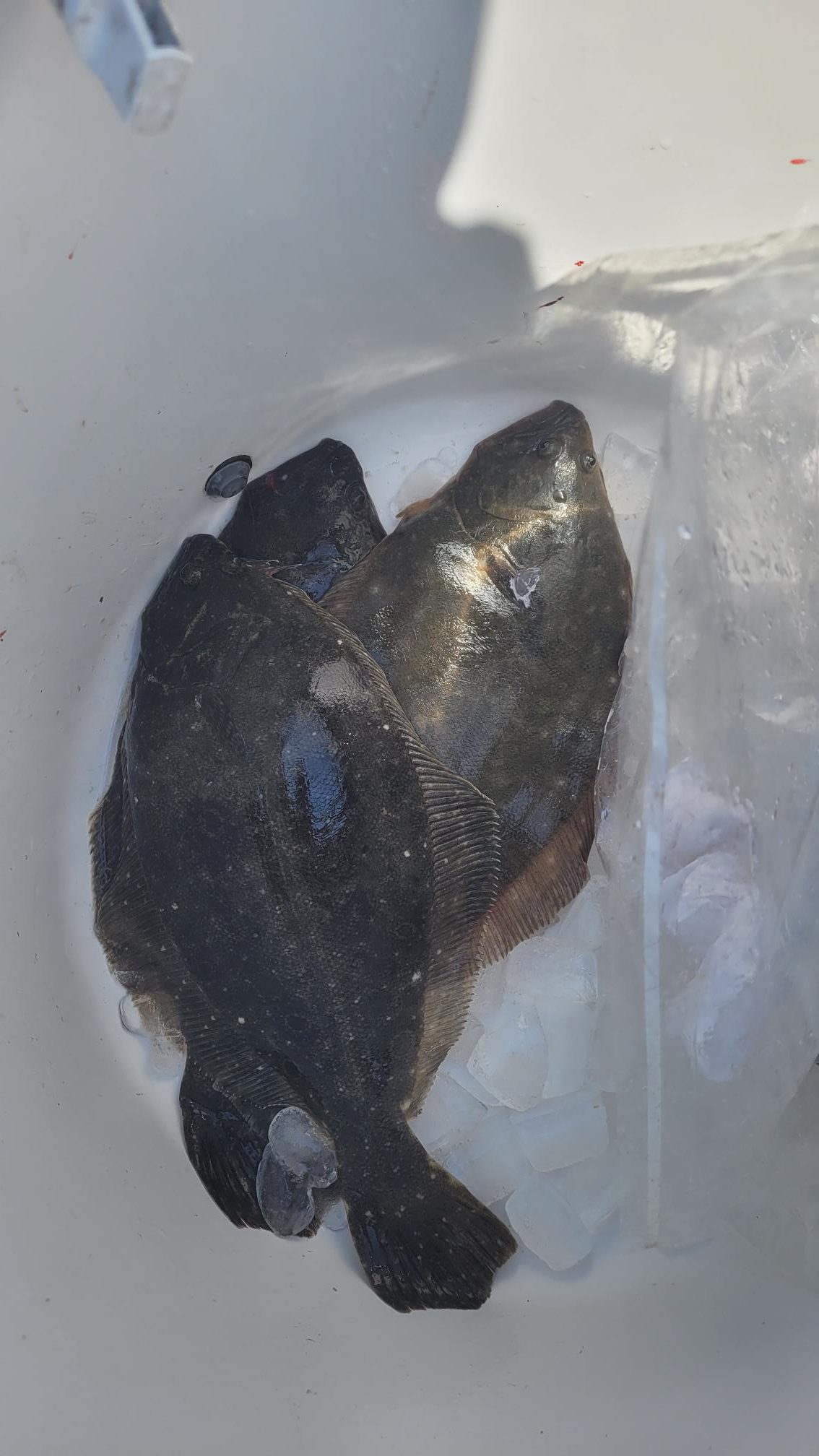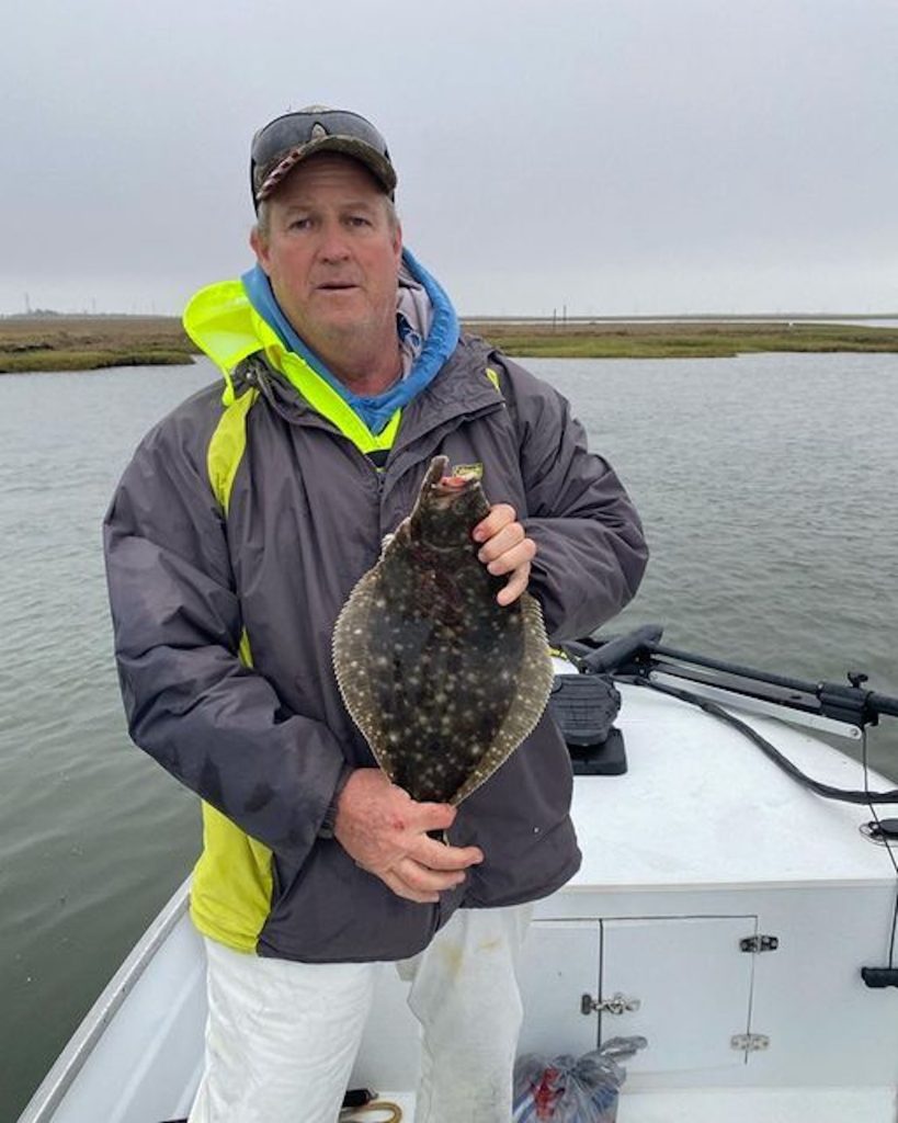 Mike Brockmeyer caught four throwback flounder and these three keepers on chartreuse Deadly Doubles with minnows.