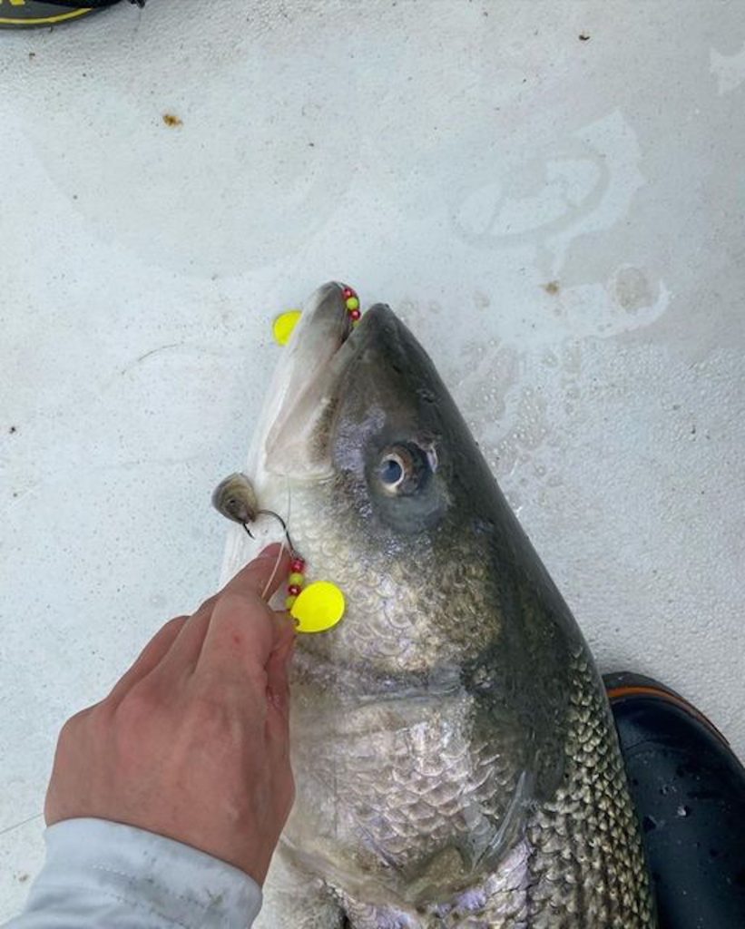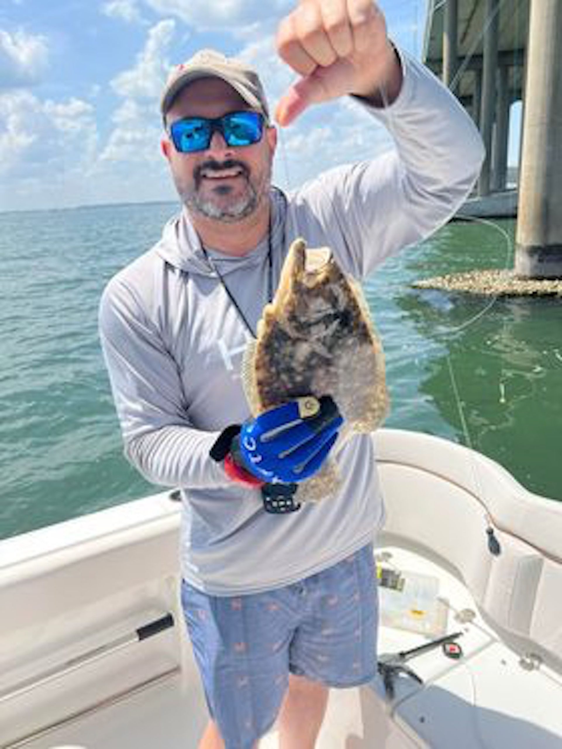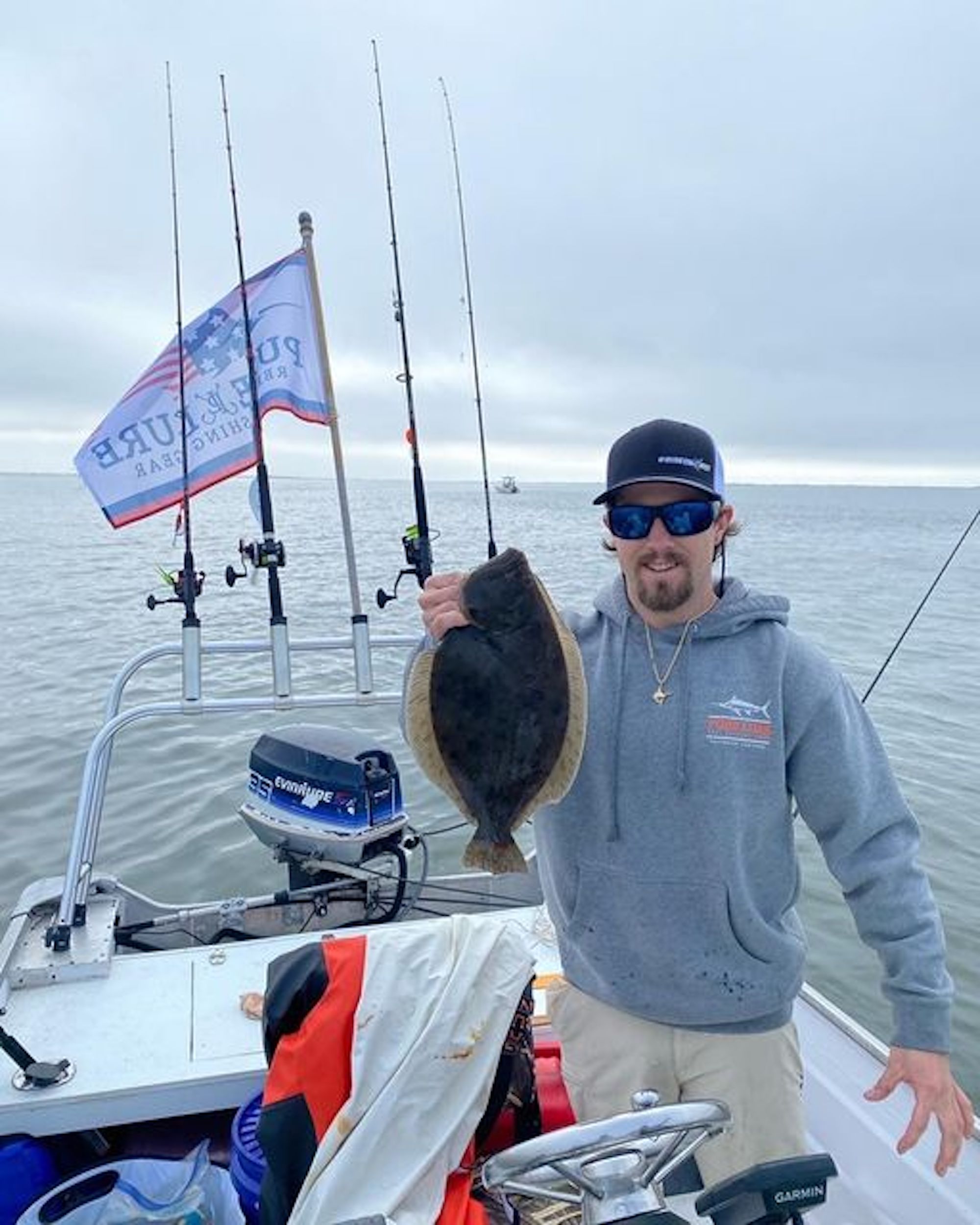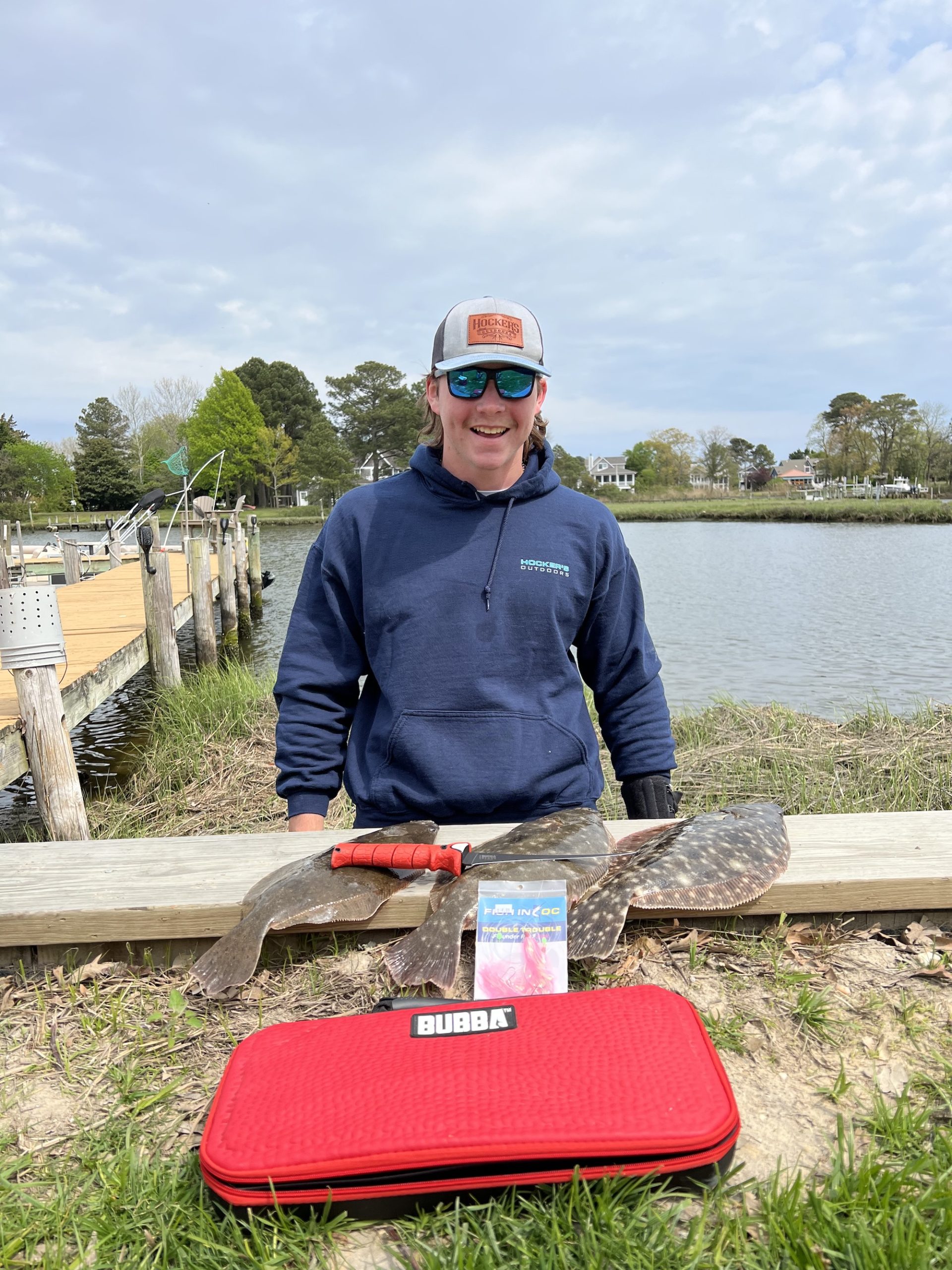 Colby Willey fished the Indian River Bay using the Fish in OC Double Trouble in pink and landed three nice keeper flounder.