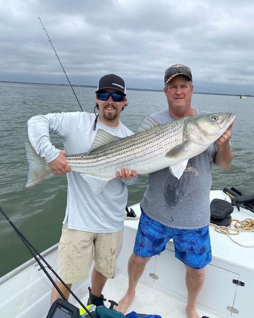 Mike Razmus and his dad Rich fished the opening day of flounder up in New Jersey today and had a great day. Mike uses the Fish in OC Deadly Double and catches a bunch of flounder up there…..but that’s not the crazy part. Mike and his dad had 18″ flounder on the Deadly Double today, but Rich also caught a big 43″ rockfish on one!! Pretty work on chasing that big fish down guys!