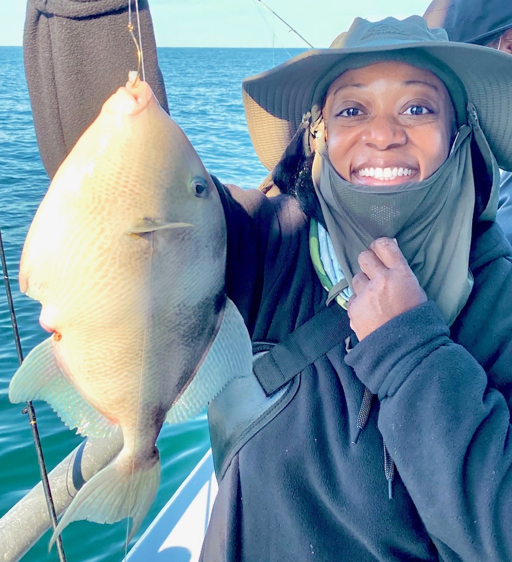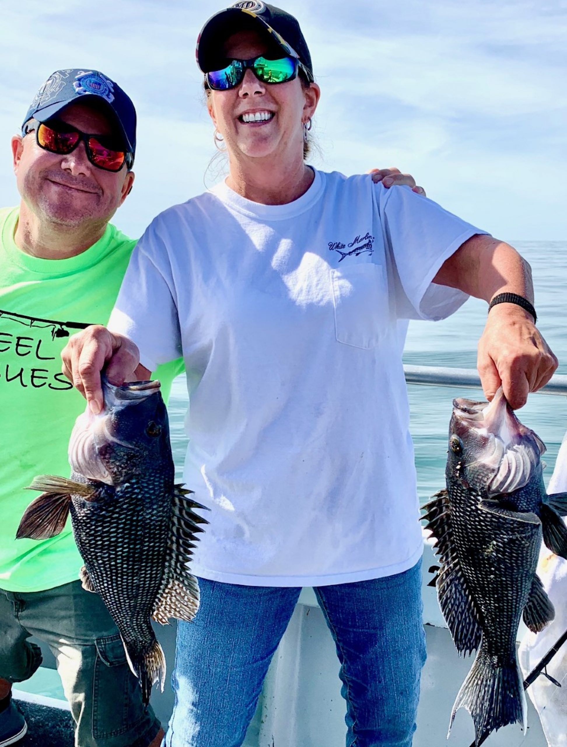 Leslie Clark & Kevin Patterson of Clinton MD boxed out first today, Leslie scored a bonus triggerfish too.