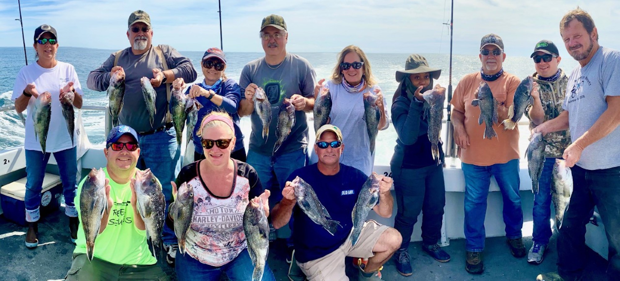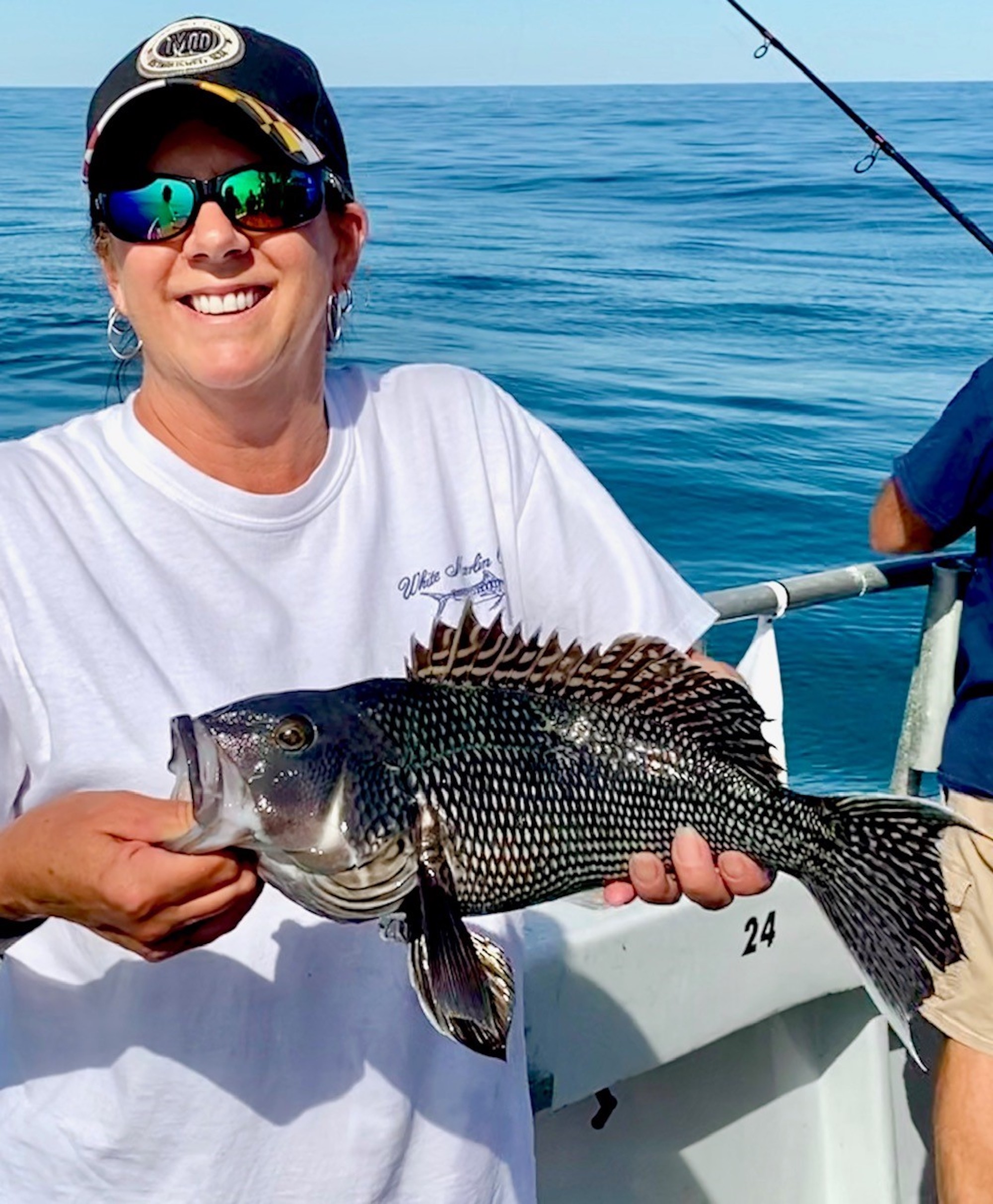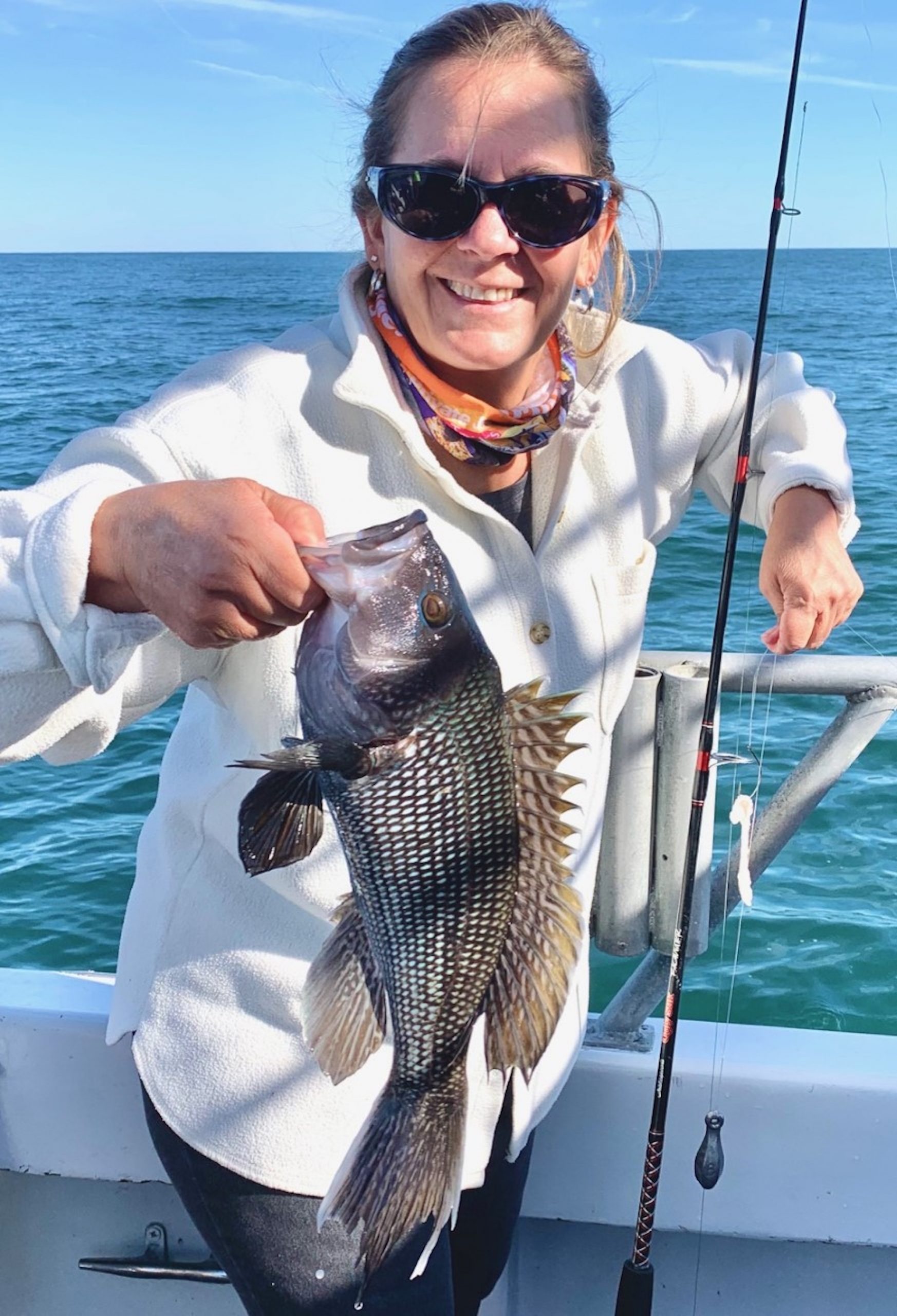 Ocean almost glass calm, cbass on the feed, finished with a boat limit of sea bass and a smooth ride home.