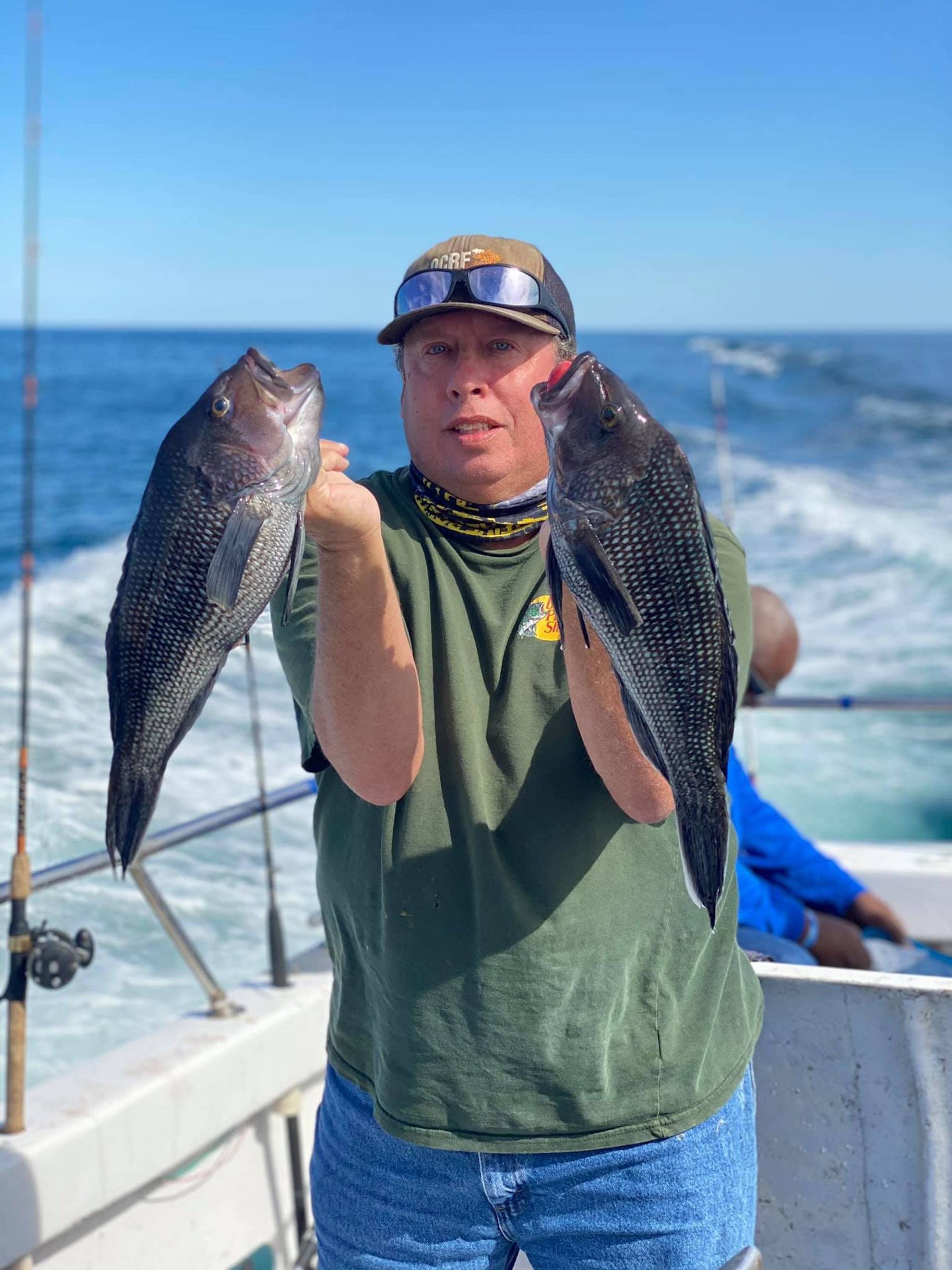 Captain Chase Eberle of Chasin’ Tides Charters had a very nice day on the ocean today putting a four man limit of sea bass in the cooler.
