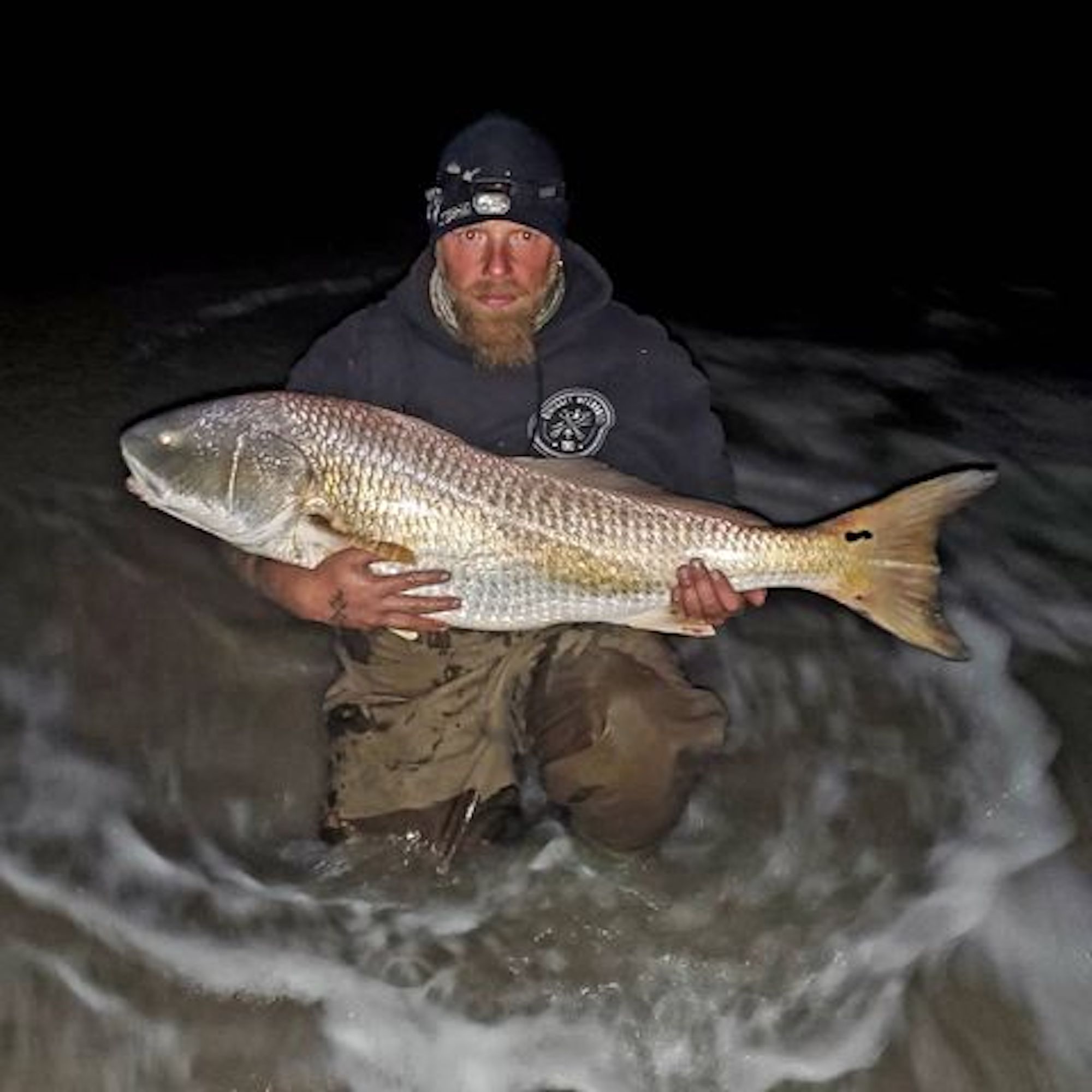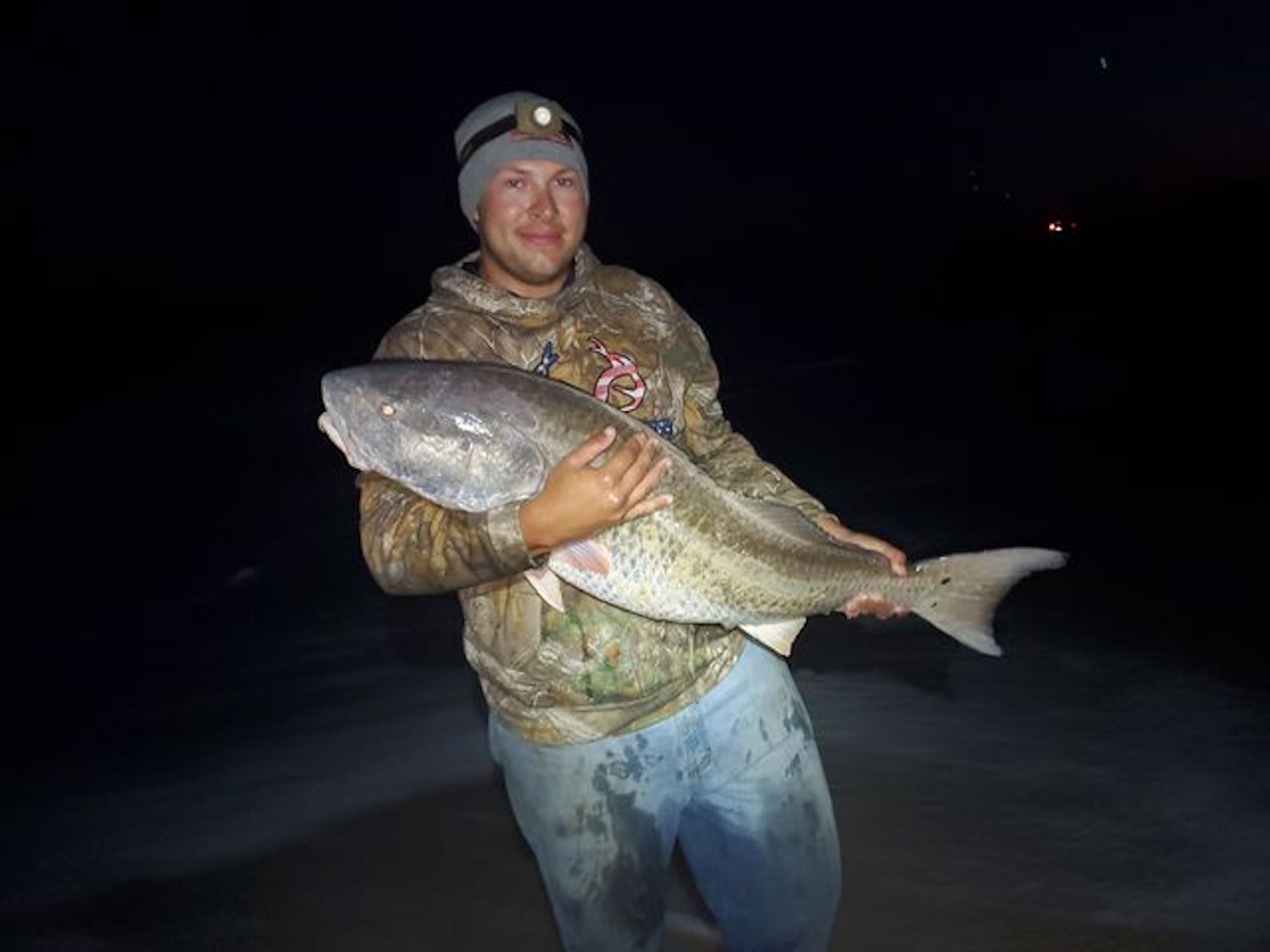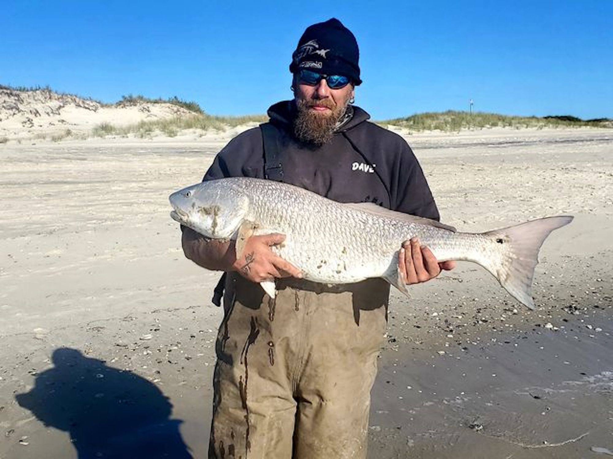 David Moore and Kyle Mooney have been slaying the red drum in the surf over the past few weeks. They have had several fish over 45″ and Kyle beached a stud fish of 52″. All fish are above the slot limit and were released.
