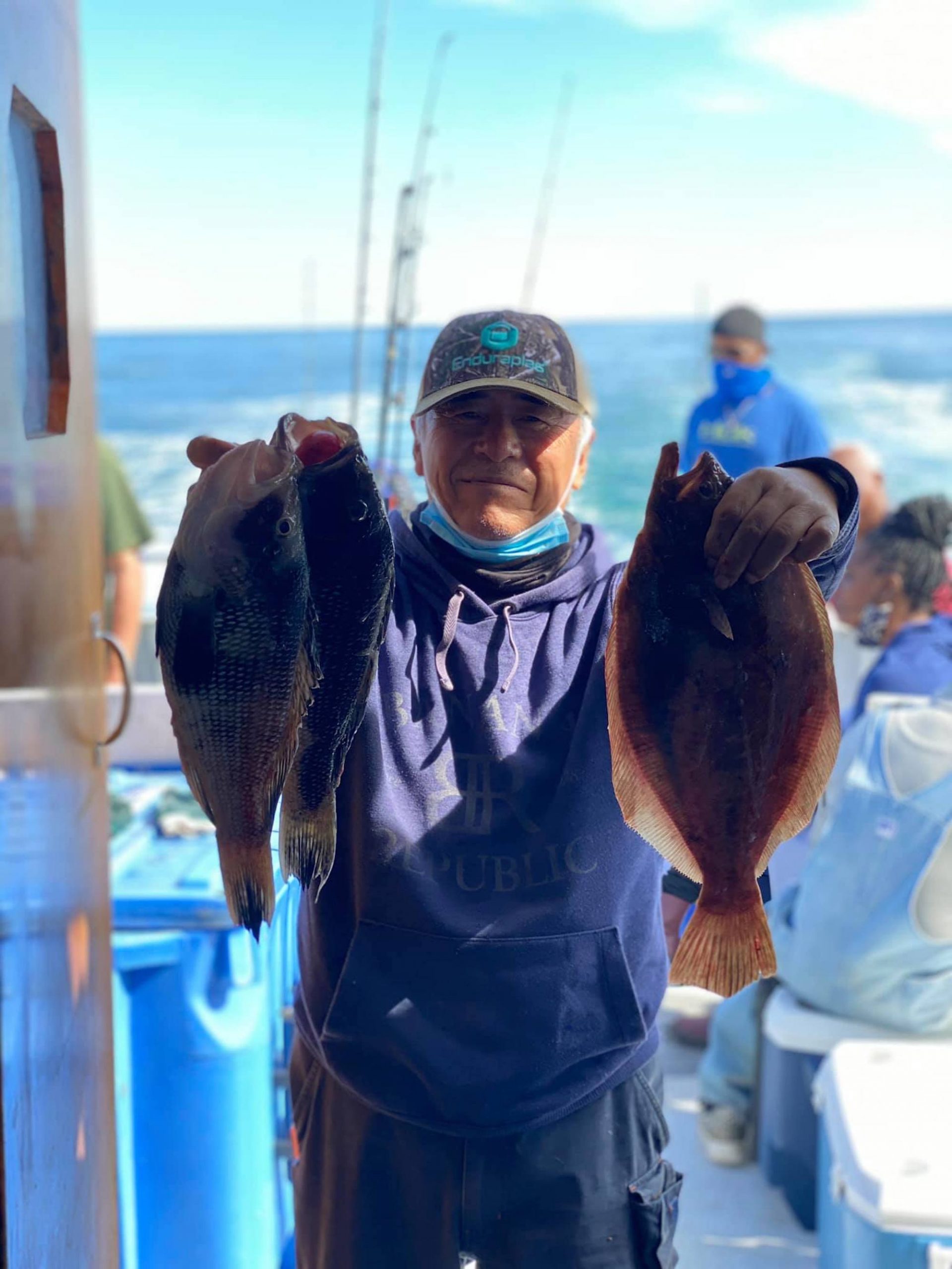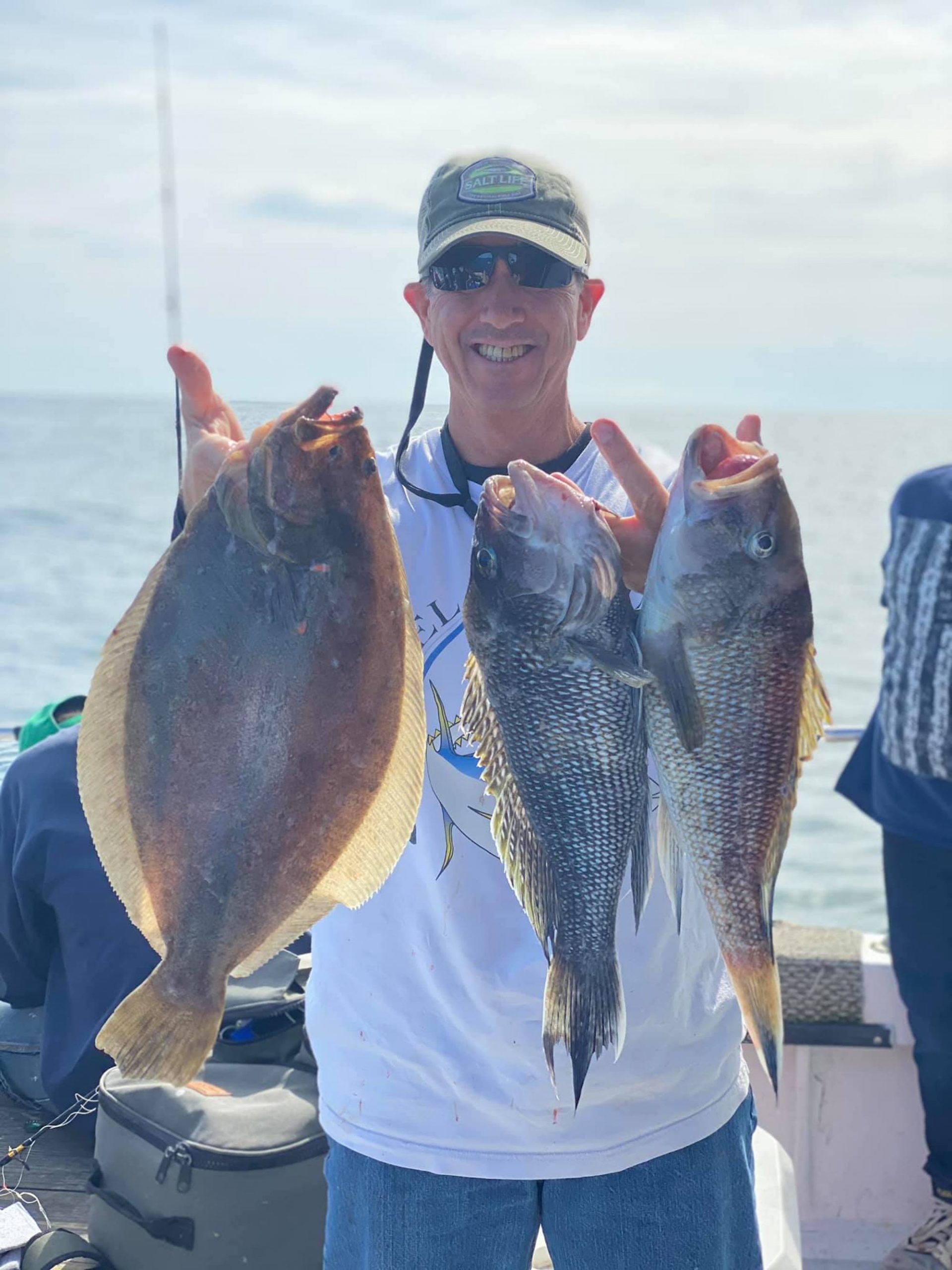Captain Chris Mizurak of the Angler had a slow start to today, but fishing picked up nicely this afternoon with flounder, sea bass, some triggerfish and even a red snapper.