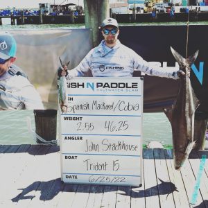 The big story of the tournament was the huge 46.25 pound cobia that winner John Farrall Stackhouse caught. John paddled out to the ocean, caught that jumbo cobia and then paddled back to the scales. Impressive!