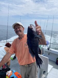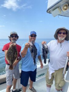 The ocean bottom fishing fleet enjoyed a beautiful, flat calm day of fishing today and a good bite on top of it. Captain Chris Mizurak of the Angler had a great day with plenty of nice sea bass and some good flounder being caught.