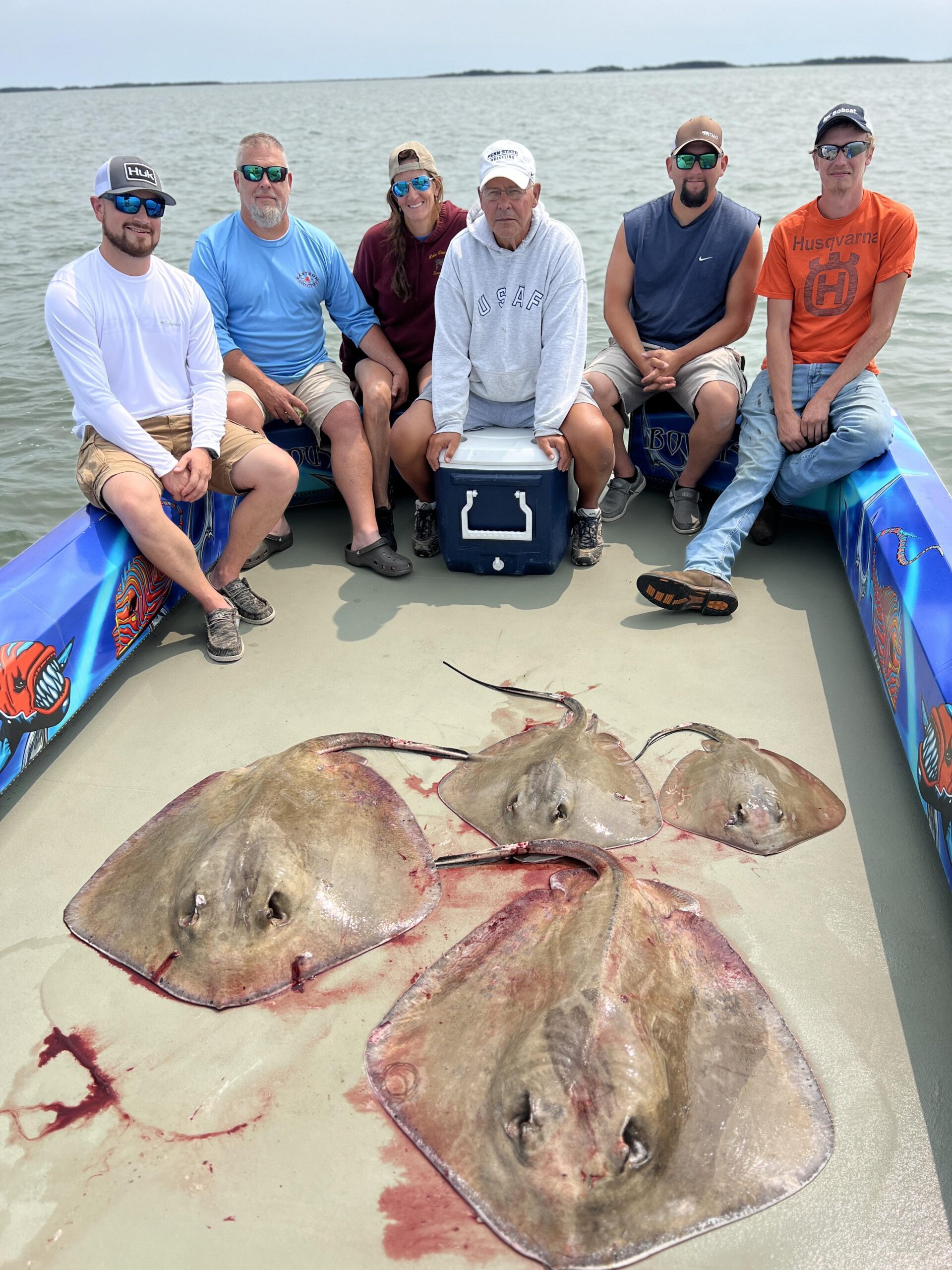 Captain Marc Spagnola of Dusk to Dawn Bowfishing had a couple of great trips over the past 24 hours with rays for his shooters both day and night.