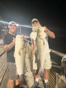 The rockfish wer snapping the other night on the route 50 bridge and Shaun Flaherty and Morgan Mericle got into a couple of good ones. These two beauties measured 37″ and 38″ and were quickly released.