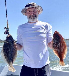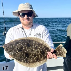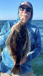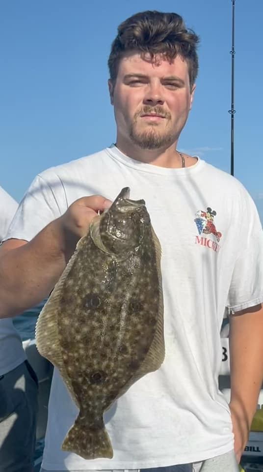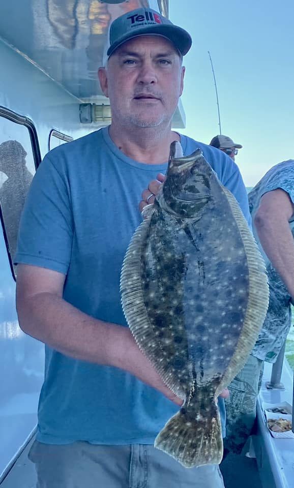 Captain Monty Hawkins of the Morning Star put his folks on some flounder in rough seas today.