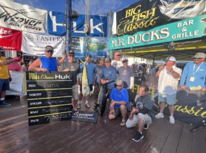 Day number 3 of 4 is in the books for the 10th Annual HUK Big Fish Classic and it was a pretty slow day at the scales. All but one of 60 boats is fishing the final window from lines in at 7 AM this morning until 3 PM tomorrow afternoon so tomorrow looks to be a very, very busy day. We had one boat come to the scales today with just two fish and one of them didn’t qualify so there is currently one fish on the leaderboard looking at A LOT of money. The crew of the Morning Glory had a non qualifying mahi and a 55 pound yellowfin tuna that is currently worth a couple of hundred thousand dollars. If I was a betting man I’d say that’s going to change tomorrow, but what won’t change is the $8,000 that Morning Glory won for the daily prize. Morning Glory is headed back out to fish tomorrow with the other 67 boats so tomorrow is still anyone’s ball game. Good luck to everyone fishing….I’ll see you at the scales tomorrow starting at 3 PM.