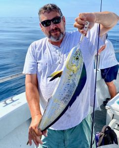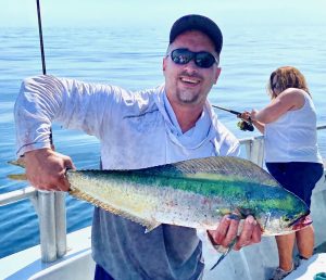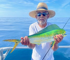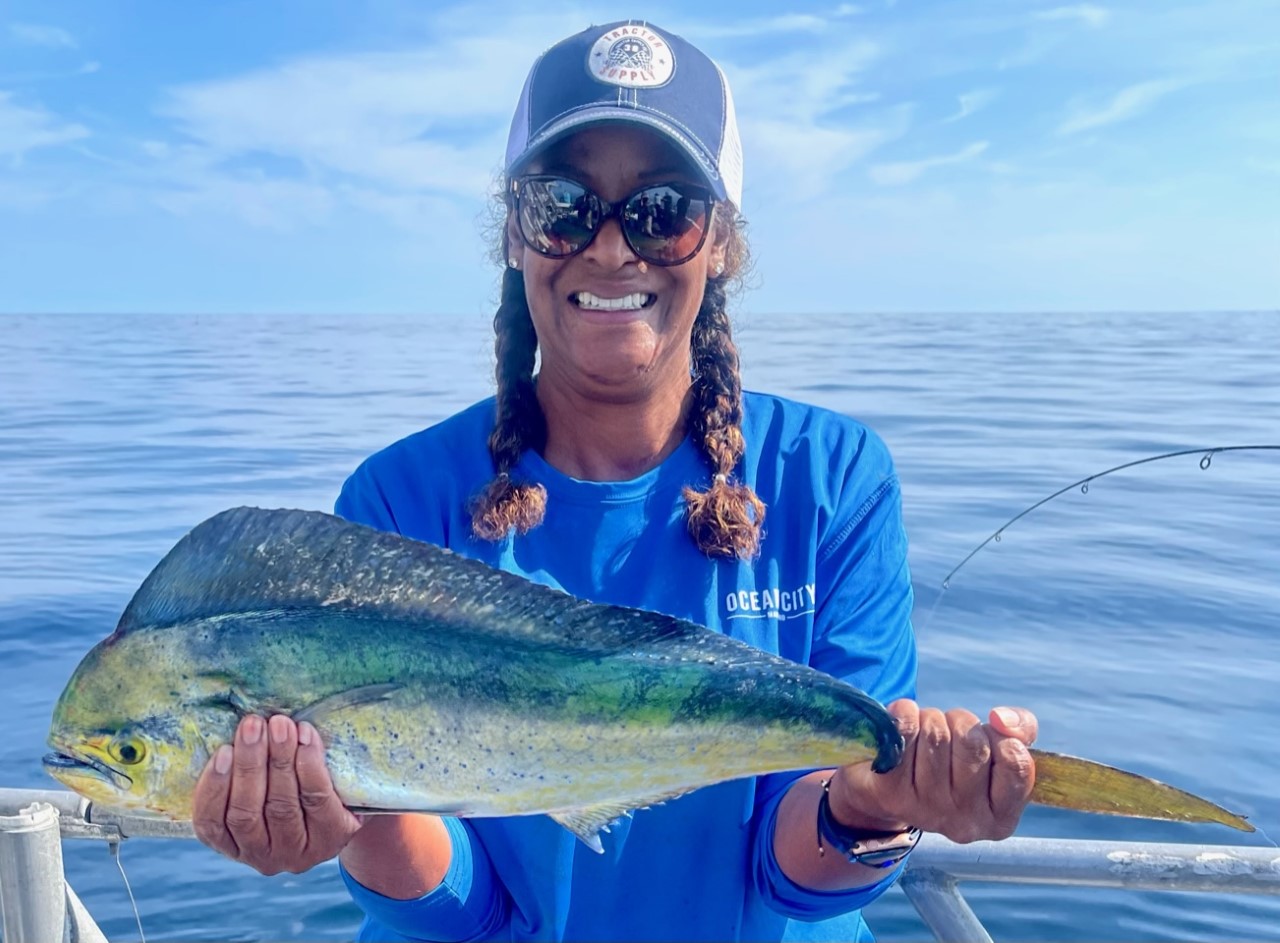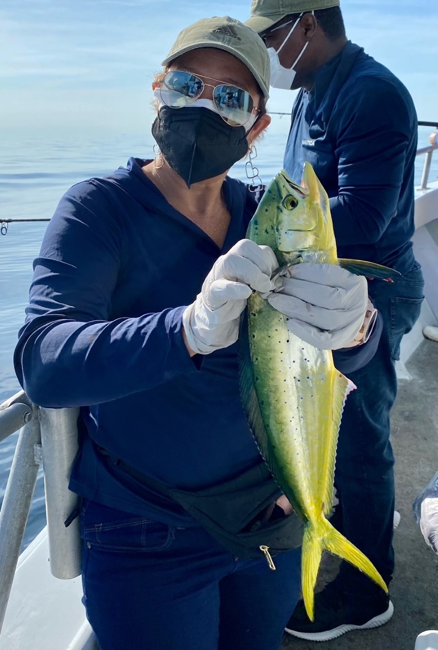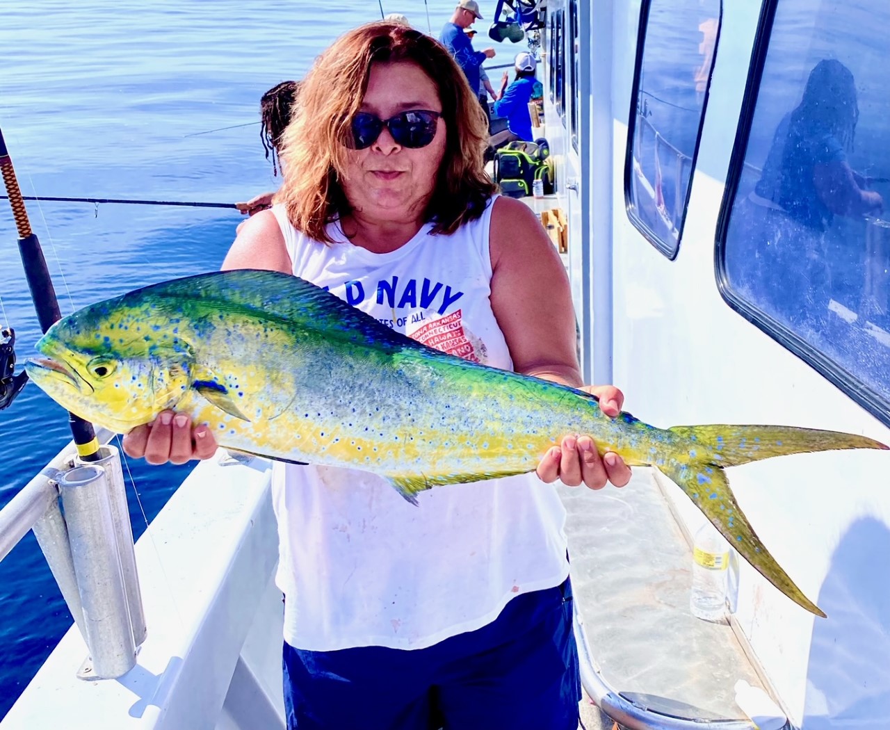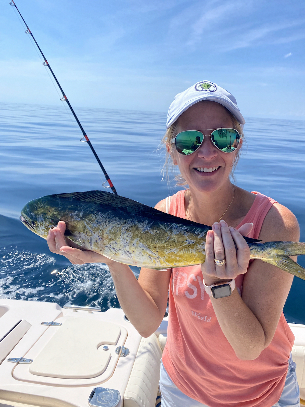 Kathy Bielaski caught her first ever mahi on the slick calm ocean today fishing with her husband Tim.