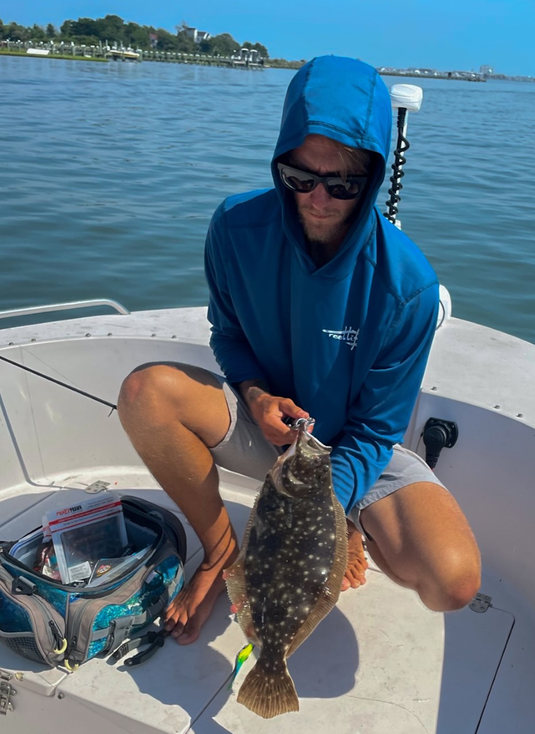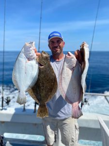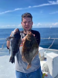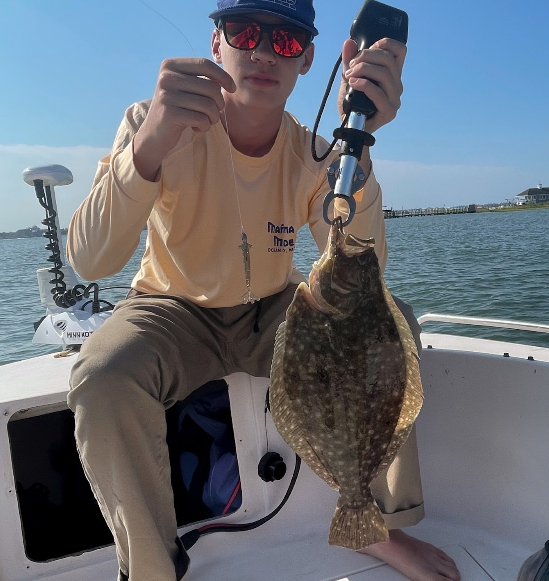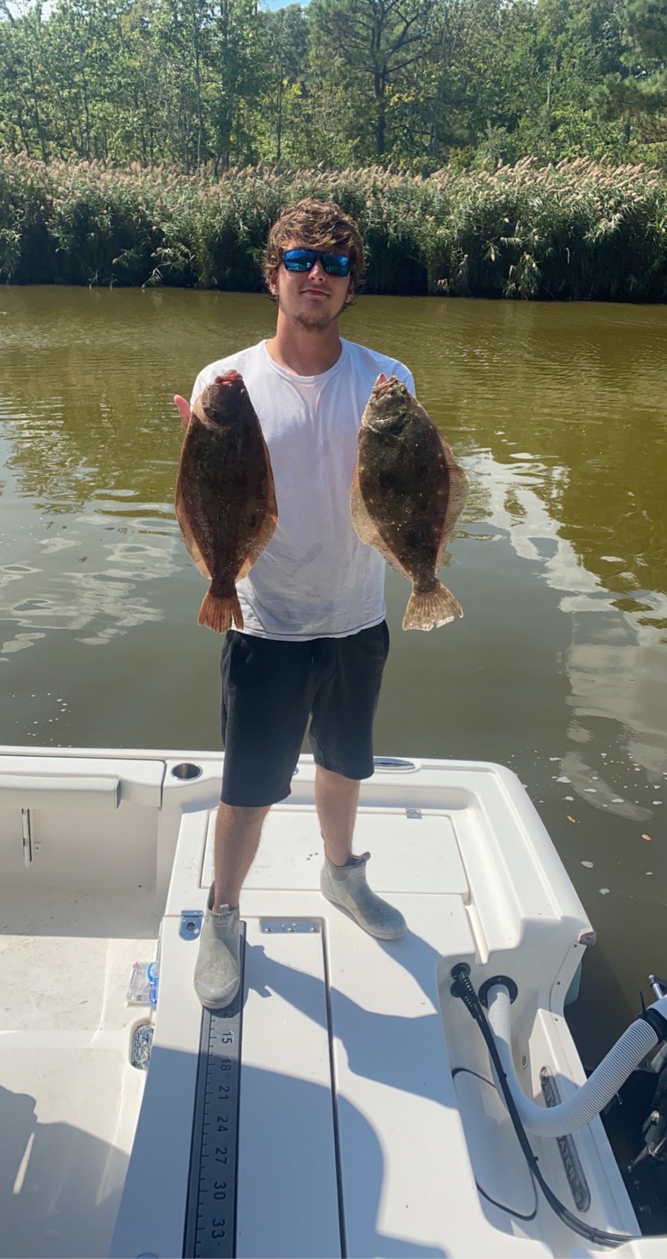 Austin Wagner was fishing with Owen West just offshore with the Fish in OC Double Trouble when he landed these keeper flounder of 19″ a piece.