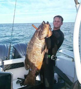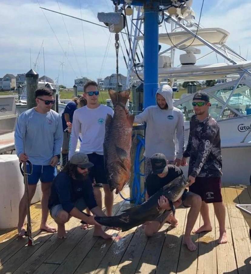 If you saw our Facebook post this morning you already know about the very, very rare fish that was speared off of the coast of Ocean City yesterday by Kai Cropper and crew. The guys were spearfishing in just 30′ of water when they shot a beautiful 62 pound cobia and Kai added this 64.5 pound Cubera snapper. Although a Cubera was apparently caught off of Ocean City some time ago, I have never seen or heard of one. Awesome capture!!