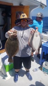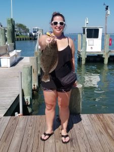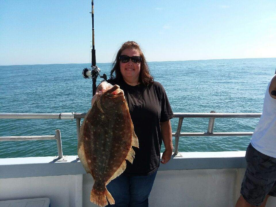 Mary Schmehl from Sinking Springs PA caught this fat 24″, 5 pound flounder caught using squid and clams at an inshore reef while fishing on the Judith M with Captain Eric Shoaff.