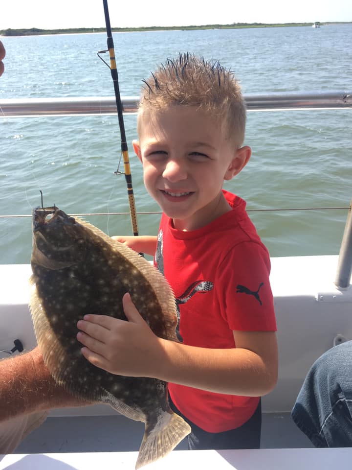 10 year old Matthew Brannan used our Deadly Double rig in chartreuse down in Metompkin, VA to land this nice keeper flounder while fishing with his dad Brian.