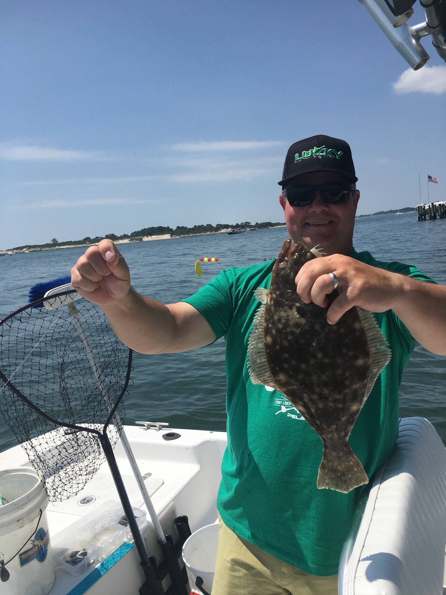Brian Brannan had his wife Linda and son Matthew out for some flounder fishing today and had some luck. Linda caught her first fish in 7 years and Matthew caught his first flounder of the summer.