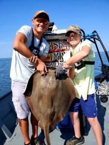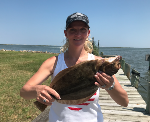 Blake Brown of Abingdon, MD was fishing with Rick Gorsuch when he caught this 17″ keeper flounder while drifting the route 90 bridge with our Dale Timmon’s Deadly Double rigs.