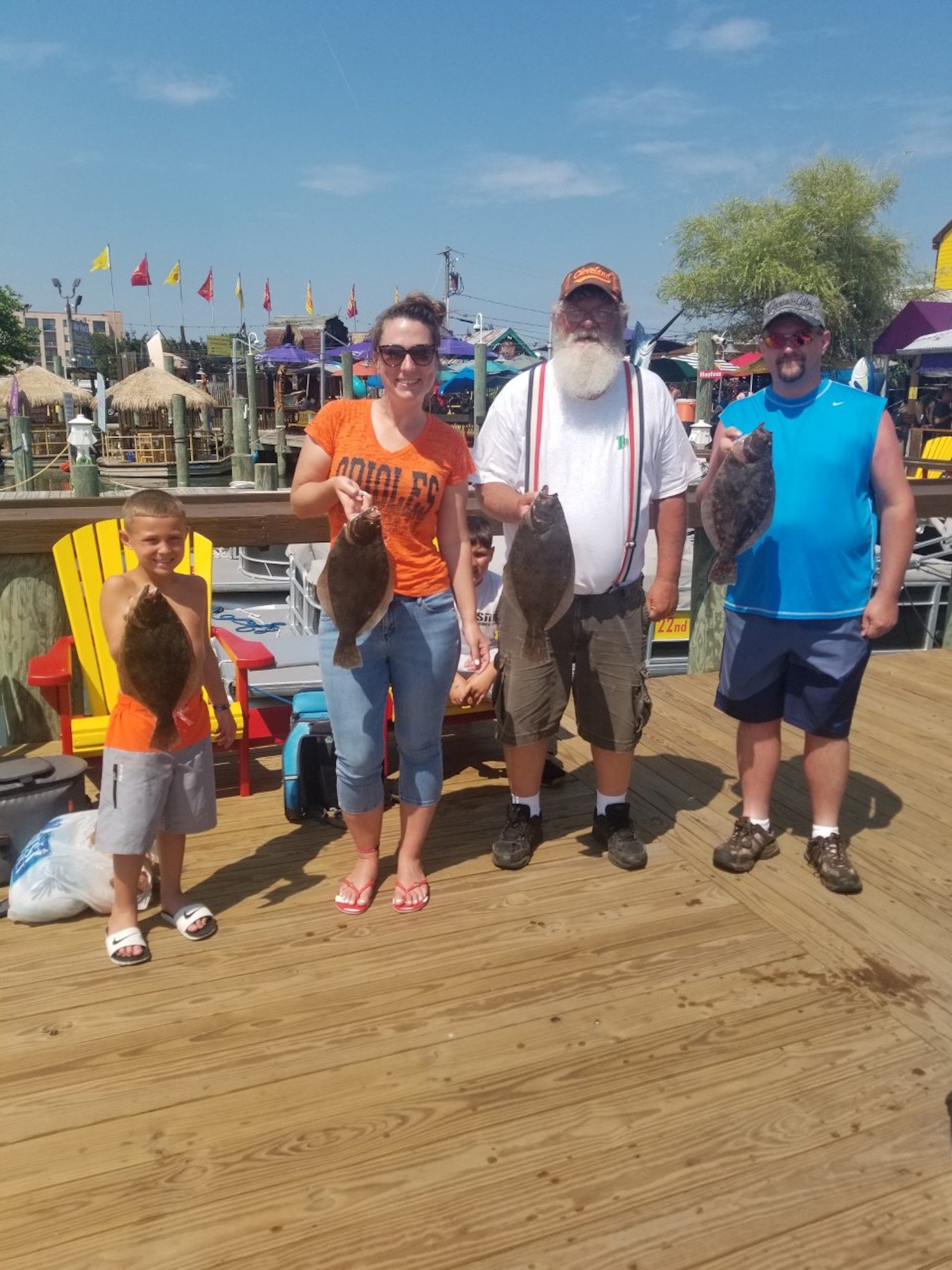 The family and I got out to get in on the flounder action today and although we all caught fish, my wife Kristen smoked us again. We had some good throwback action and her fish was about 3 pounds on Deadly Double rigs in chartreuse.