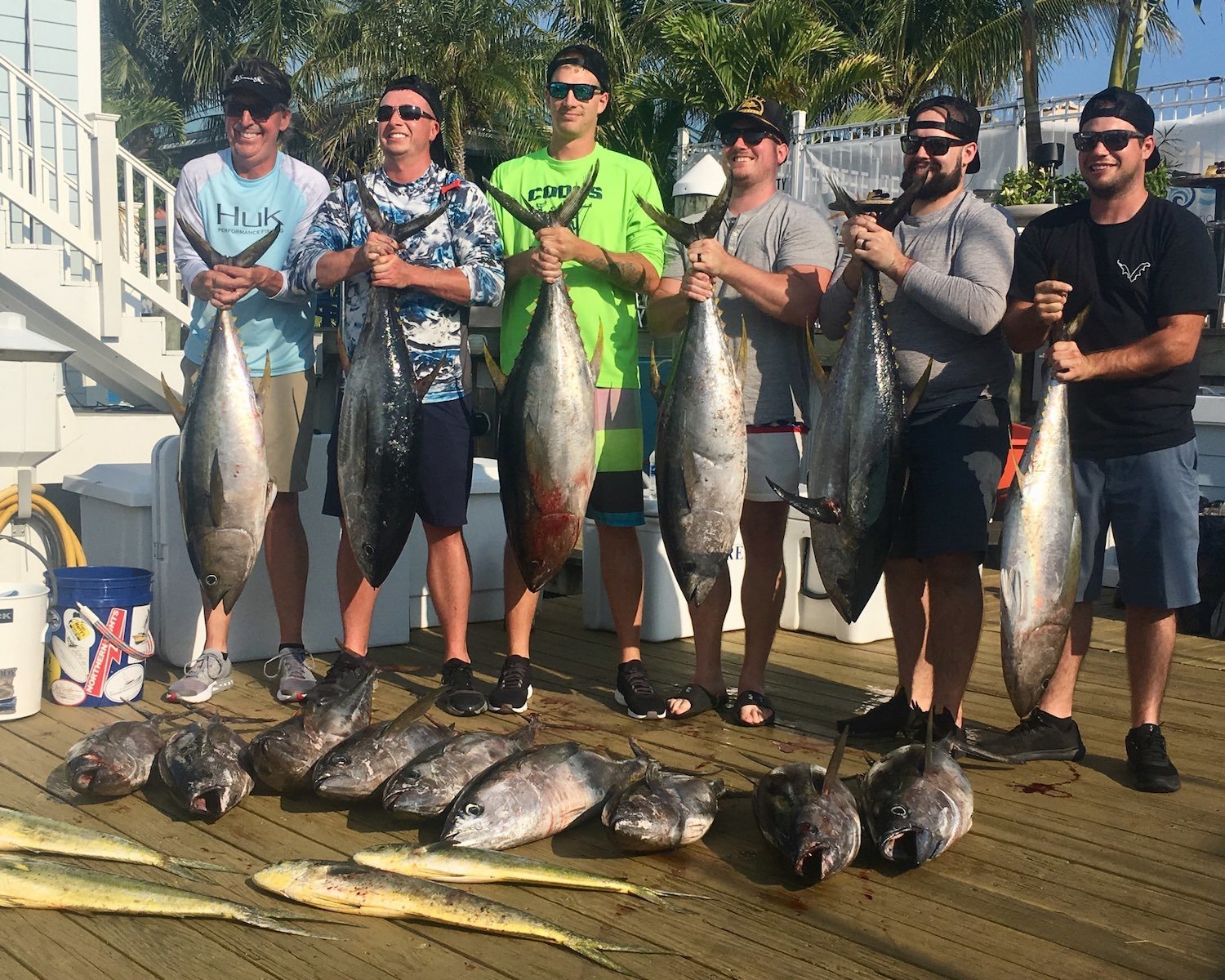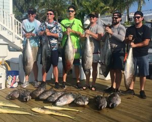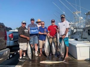 Offshore fishing has been intermittent the past few days with some boats resorting to bluefin fishing, but the crew of Boss Hogg found some good yellowfin fishing today. Captain Corey Kennington put his crew on 15 yellowfin tuna and four mahi on their offshore trolling trip.