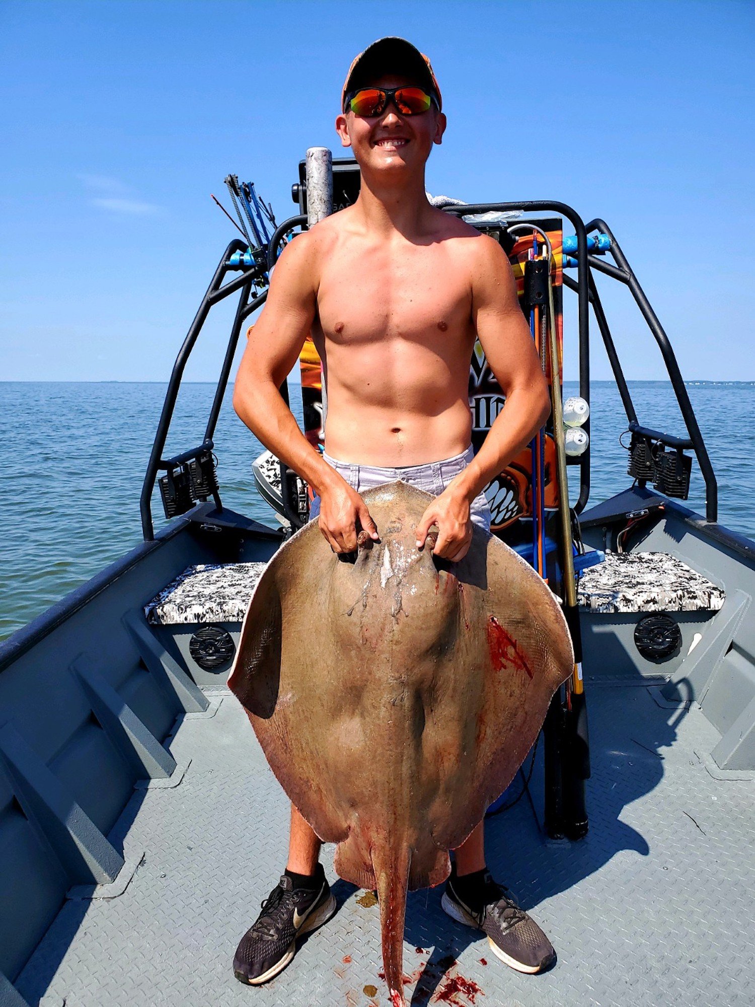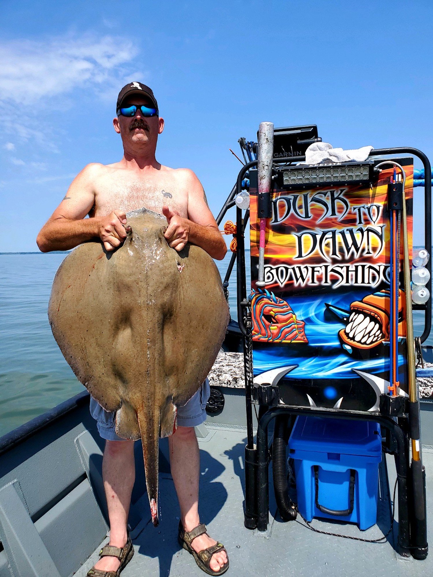 Captain Marc Spagnola of Dusk to Dawn Bowfishing has been enjoying the clean water conditions. Today it was Sun’s Out, Guns Out for his shooters who put the thwack on some southern rays.