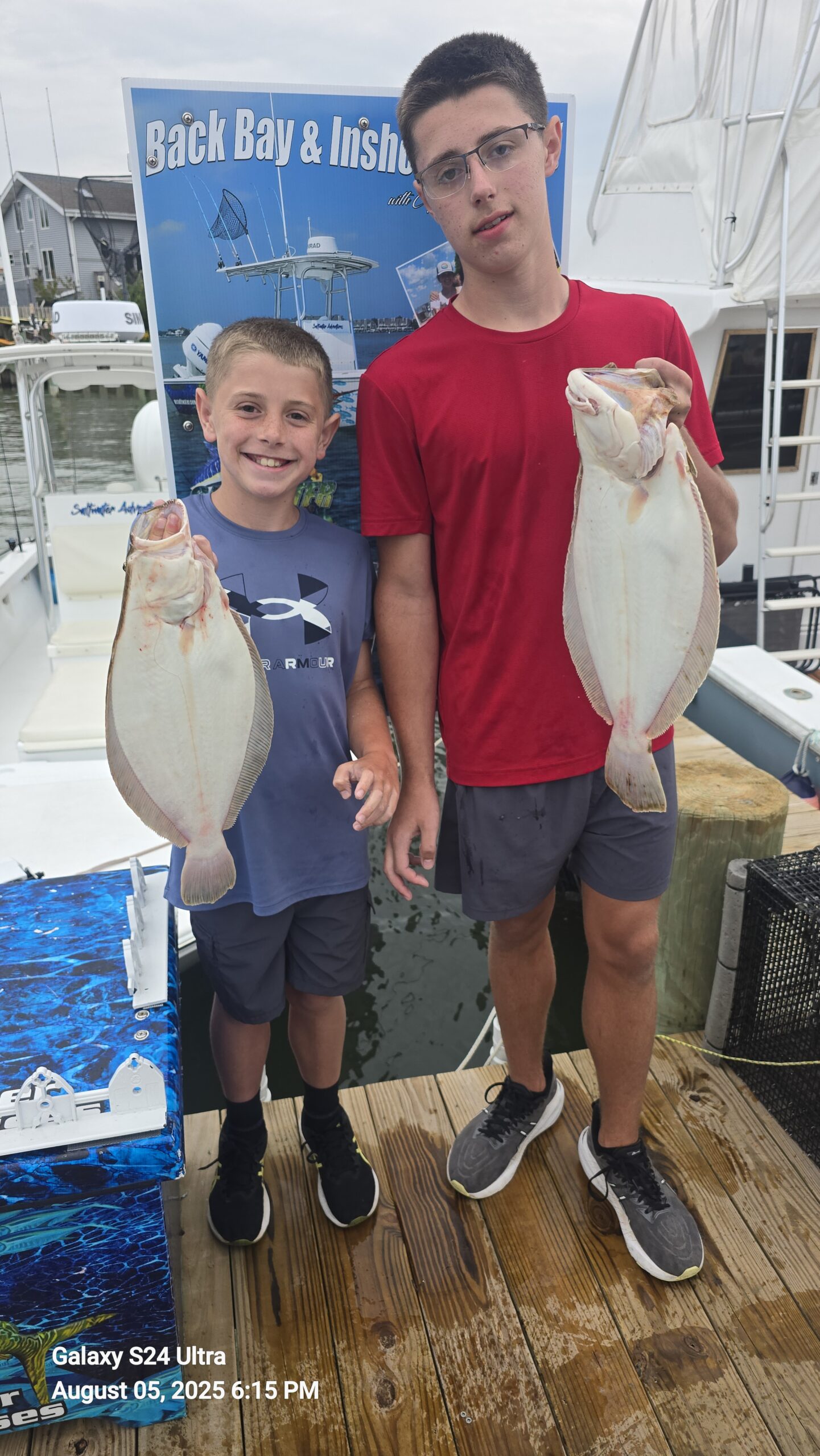 Justin, 14 and Kyle, 11 from Bellefonte, PA caught their first ever flounder fishing with Captain Tony Battista of Saltwater Adventures.