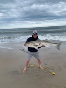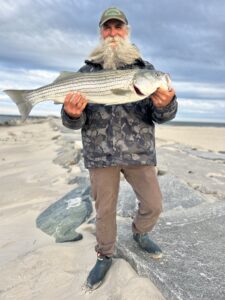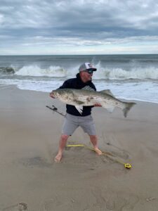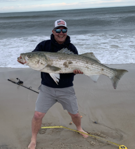 “Nature Boy” Shawn Flaherty had a great afternoon over on Assateague casting Roy Rigs in the OC Inlet. Shawn had several rockfish caught and released including this nice 35″ fish.