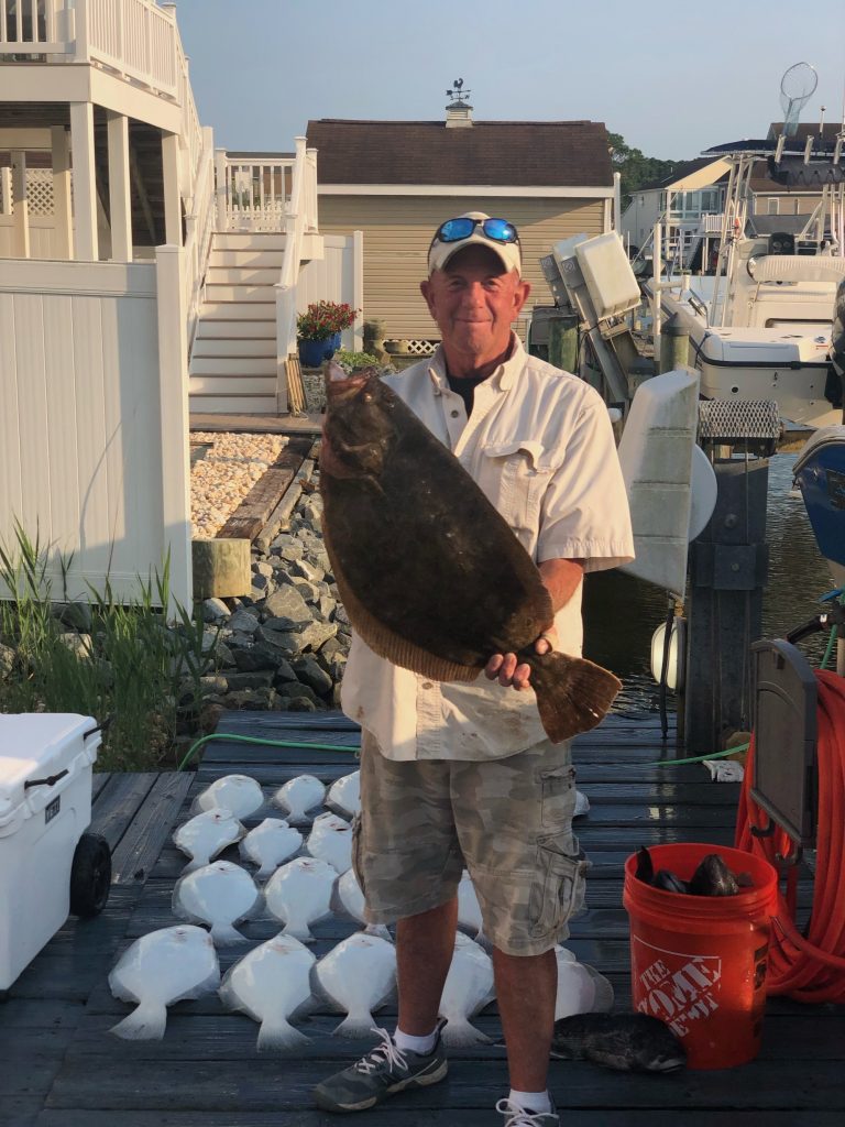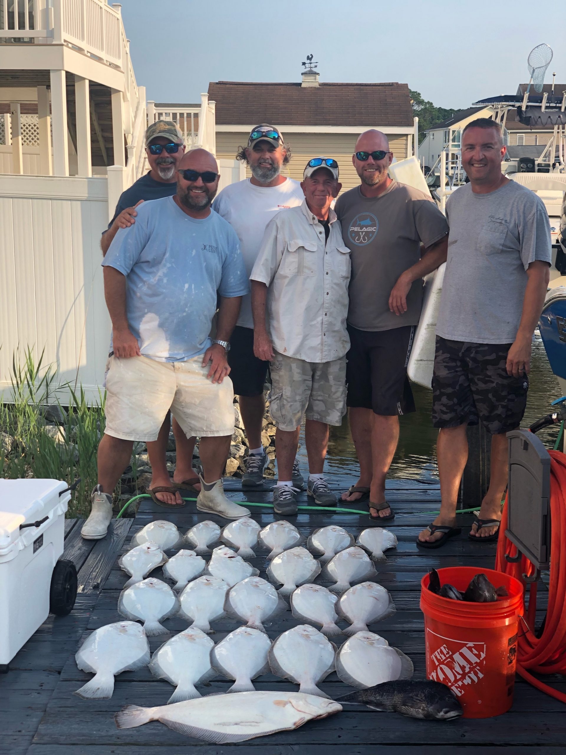 Randy Swain, Sr., Randy Swain, Jr., John Sonner, Russ Coward, Russell Cook and Bill Davidson had an awesome day of ocean flounder fishing today when they boxed a limit of fish. Randy Swain, Sr. is all smiles too as he had his personal best on the trip with a whopping 9 pound doormat.