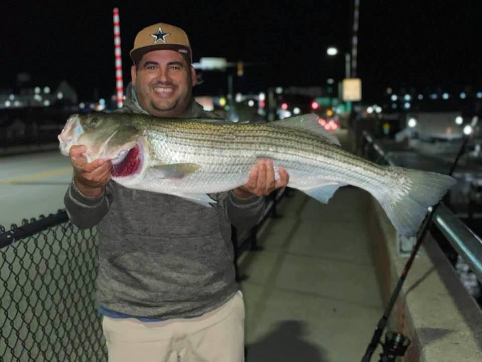 Carlos Neves caught this big rockfish while fishing from the route 50 bridge last night.