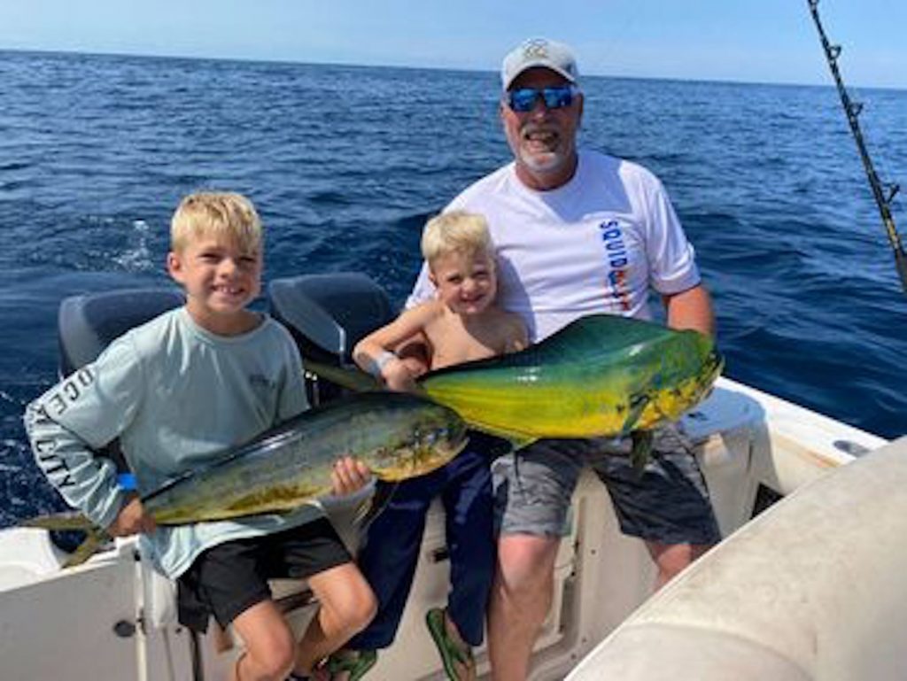 Ryken and Haakon Mulford had a good first time fishing offshore with John Doak today and found a couple of gaffer mahi in the Baltimore Canyon.