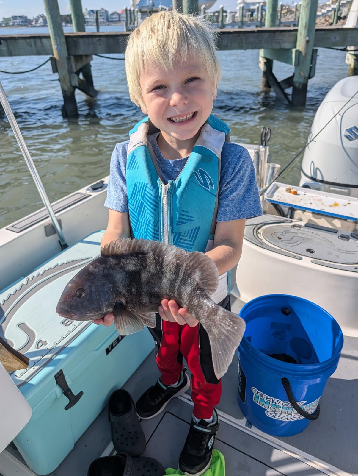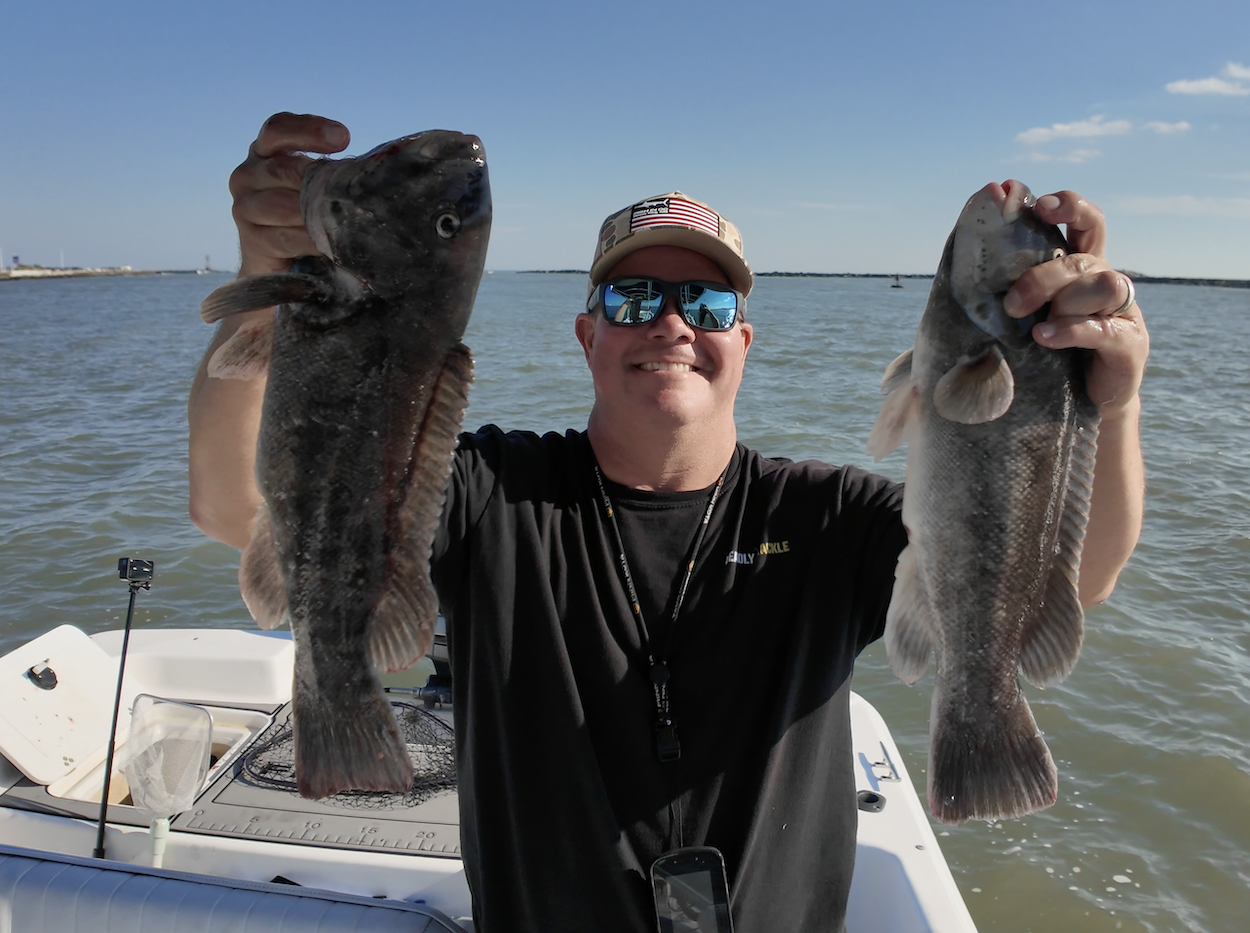 Blake Gunther of Gunther & Sons and…..sons were out there doing some damage on the tautog today too. They had a bunch of throwback fish on Deadly Tackle jigs and went home with three keeper fish.